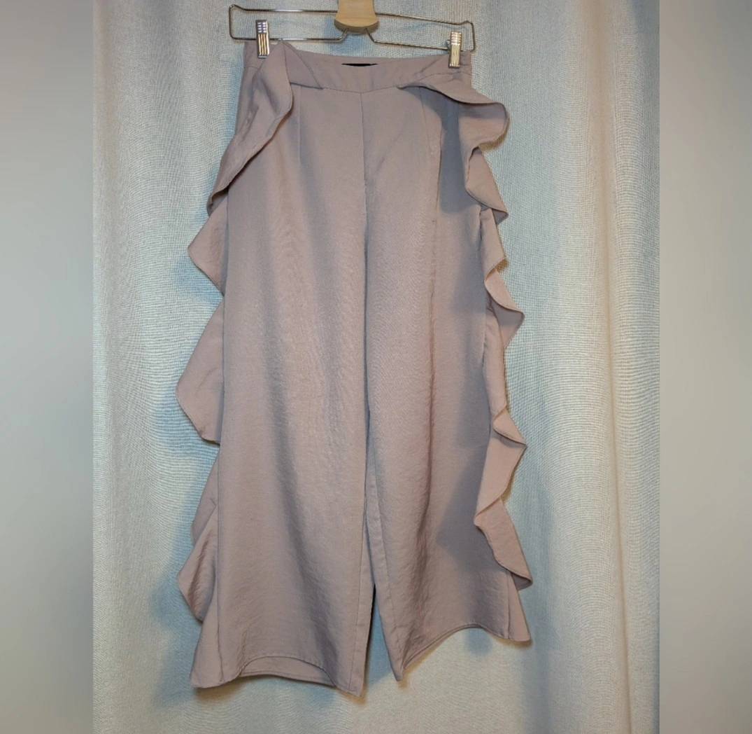 Cute Boohoo ruffle pants in a size US 4. They're in great condition and ready for a new home! These stylish pants feature a unique ruffle design that adds a touch of flair to any outfit. They are a UK size 8 and EUR size 36.