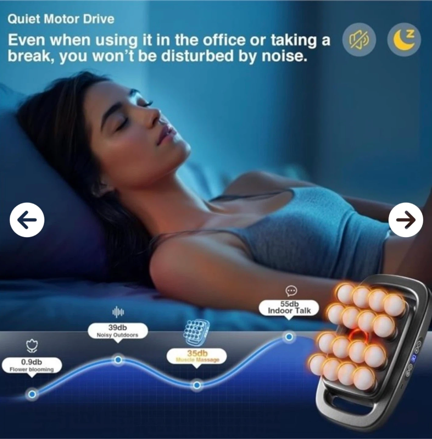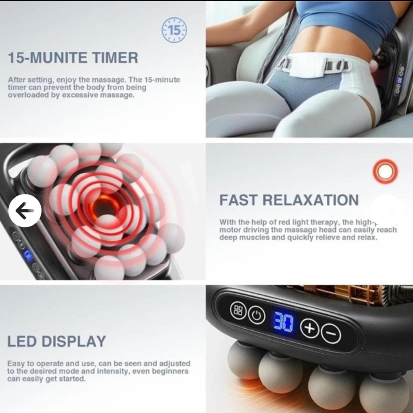 This massage roller provides an intense deep muscle massage. It features a quiet motor drive, so you won't be disturbed by noise while using it. It also has a 15-minute timer to prevent overuse and an LED display for easy operation