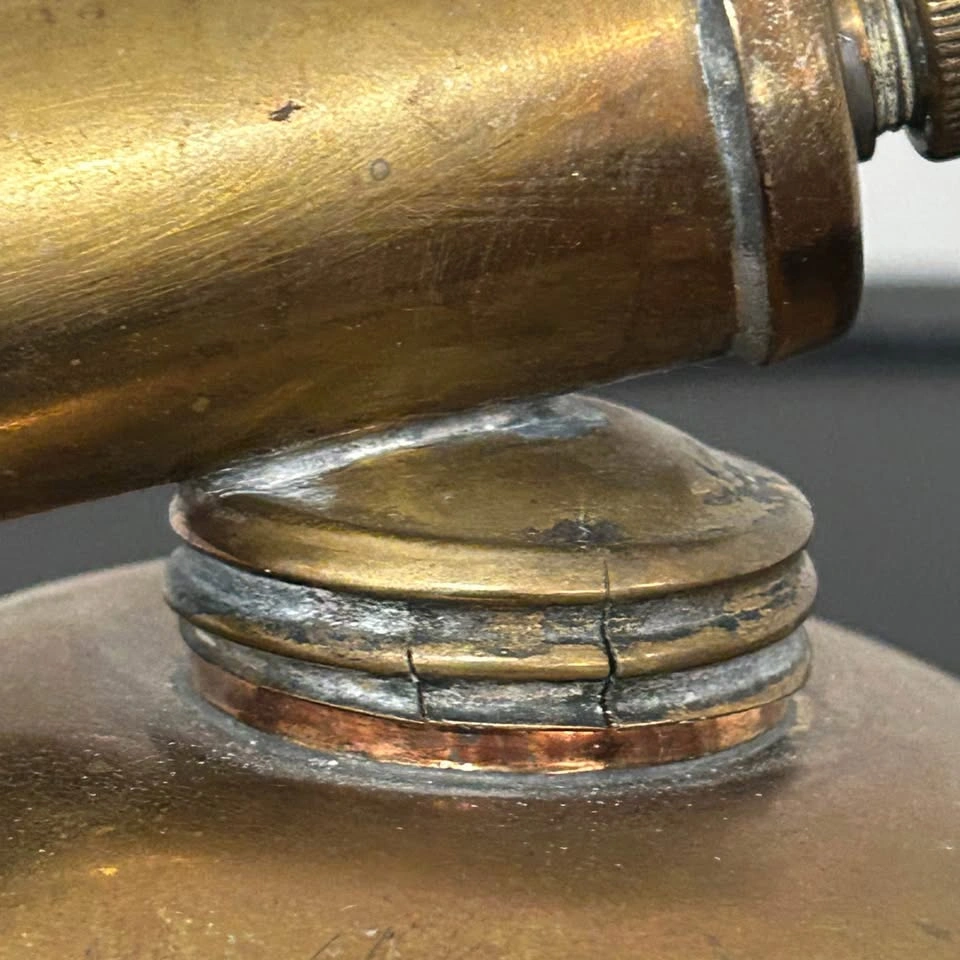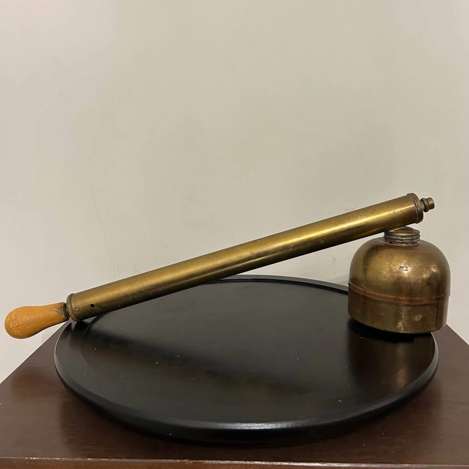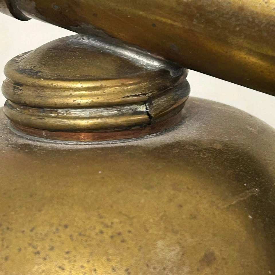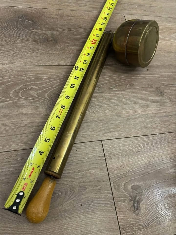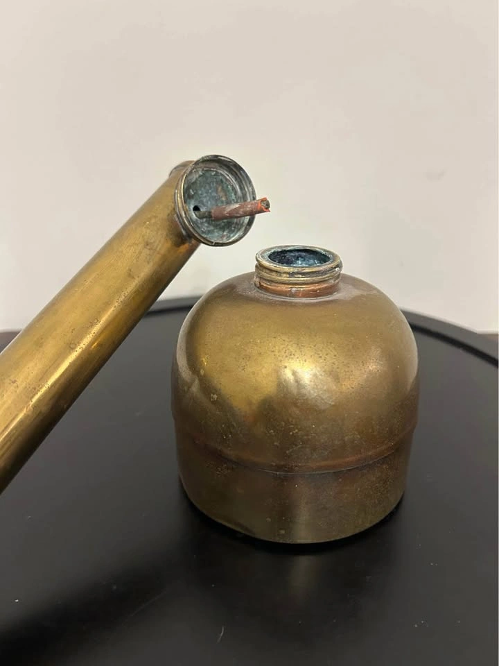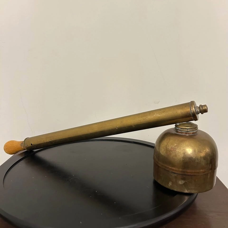 Old brass hand sprayer with wooden handle — likely used for garden or pesticide spraying, circa 1930s–1950s. All brass construction with pump mechanism and round canister base. Shows age patina and signs of use; sold as decorative display only. Perfect for vintage farm, industrial, or steampunk-themed decor. Approx. length 19”. Sold as is, visible seam crack and wear. Pick up: Seton area, Calgary. See also my other lots. Open to your questions and suggestions. If necessary, I provide additional photos. These are not new things, so please look carefully at the photos and videos. Sizes are submitted on request and also using a tape measure in the photo.