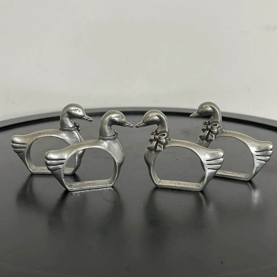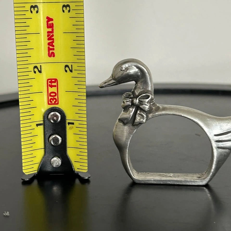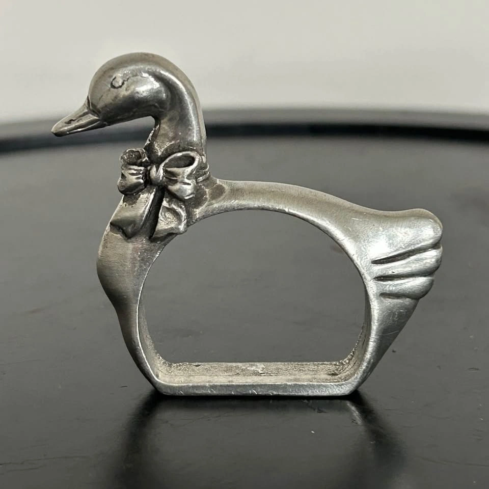 Charming set of 4 vintage pewter napkin rings featuring ducks with little bows around their necks. Each measures about 2.5” tall. Nicely detailed and with a soft silver patina typical of pewter. Perfect for farmhouse table décor, cottage dining, or collectible vintage tableware. Pick up: Seton area, Calgary. See also my other lots. Open to your questions and suggestions. If necessary, I provide additional photos. These are not new things, so please look carefully at the photos and videos. Sizes are submitted on request and also using a tape measure in the photo.