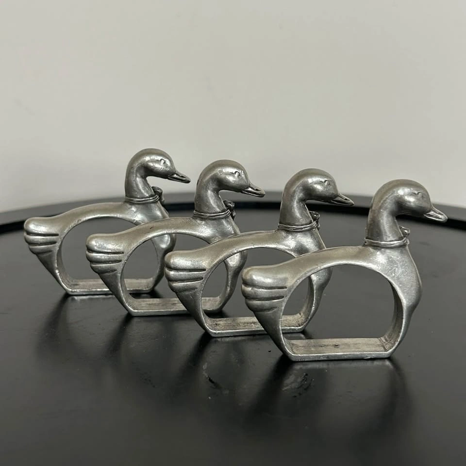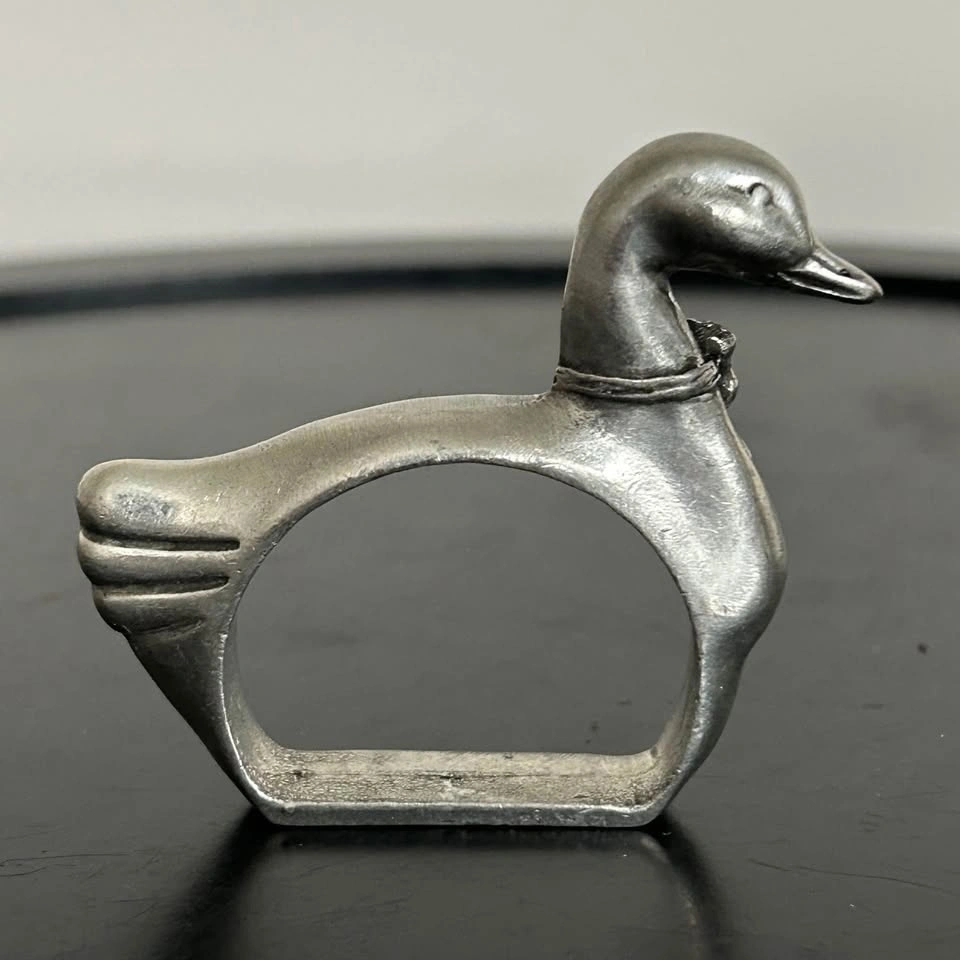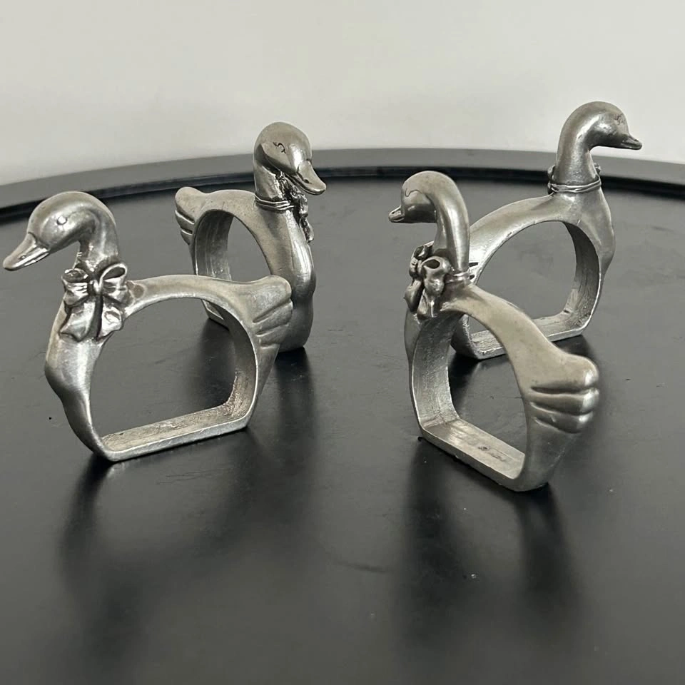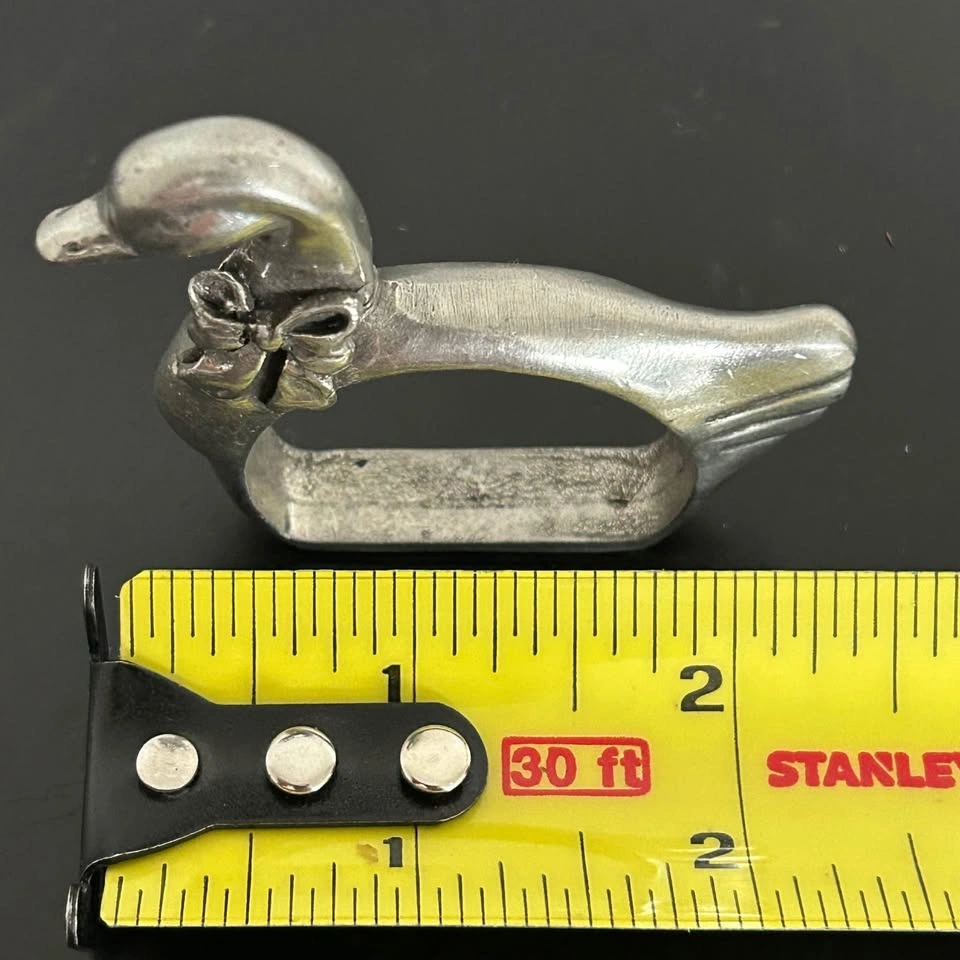 Charming set of 4 vintage pewter napkin rings featuring ducks with little bows around their necks. Each measures about 2.5” tall. Nicely detailed and with a soft silver patina typical of pewter. Perfect for farmhouse table décor, cottage dining, or collectible vintage tableware. Pick up: Seton area, Calgary. See also my other lots. Open to your questions and suggestions. If necessary, I provide additional photos. These are not new things, so please look carefully at the photos and videos. Sizes are submitted on request and also using a tape measure in the photo.
