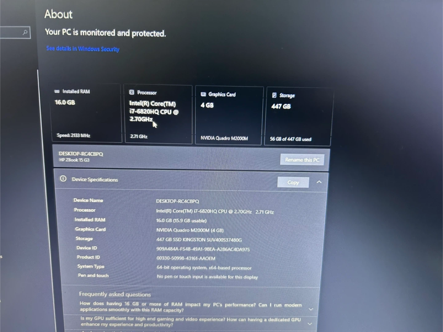 HP ZBook 15 G3 Laptop - i7, 16GB RAM, 500GB Storage