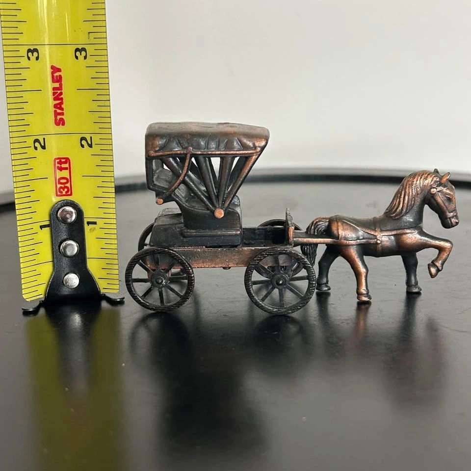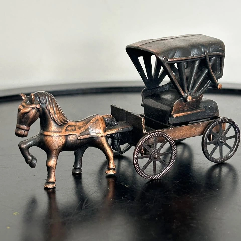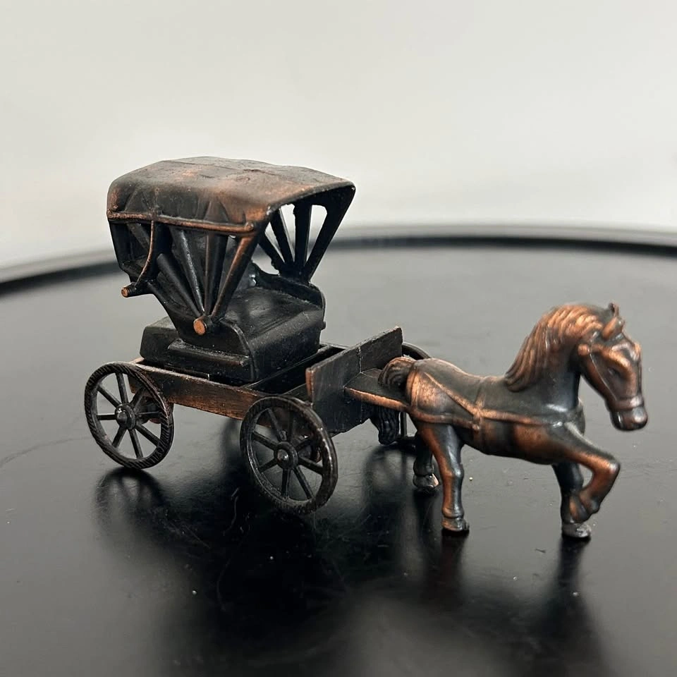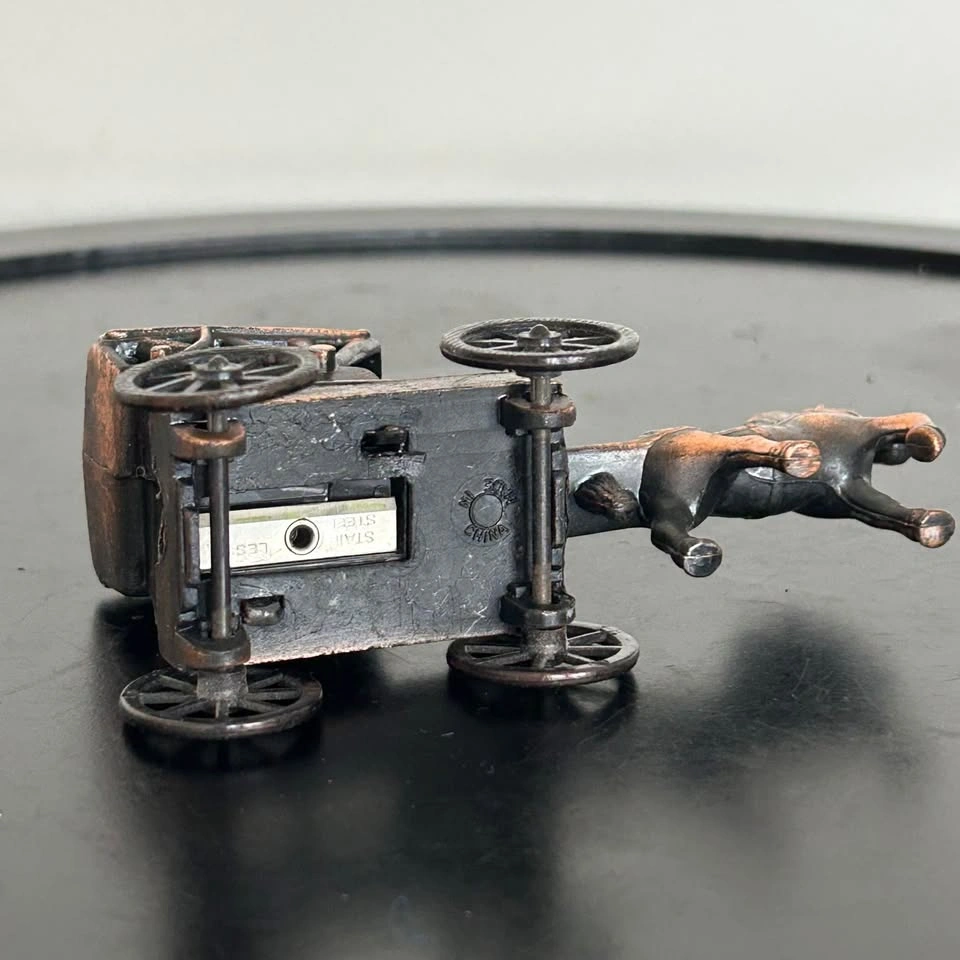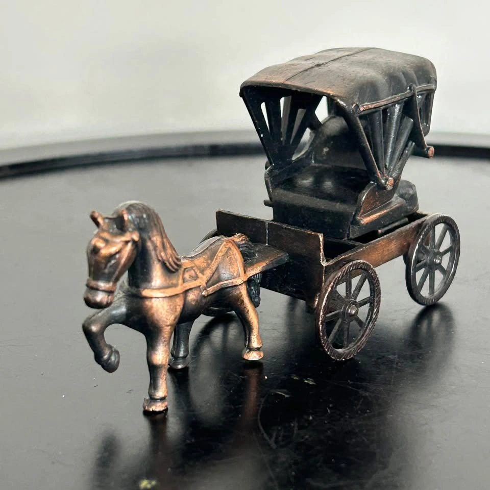 Charming vintage metal pencil sharpener shaped like a classic horse-drawn carriage. Finished in a bronze and black patina, with moving wheels and intricate detailing on both horse and carriage. The sharpener is discreetly built into the back of the carriage. Marked “Made in China” and “Stainless Steel.” A lovely collectible for vintage decor, desk displays, or miniature enthusiasts. Good used condition with light wear consistent with age. Pick up: Seton area, Calgary. See also my other lots. Open to your questions and suggestions. If necessary, I provide additional photos. These are not new things, so please look carefully at the photos and videos. Sizes are submitted on request and also using a tape measure in the photo.