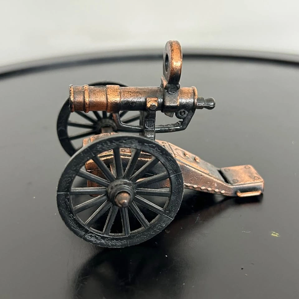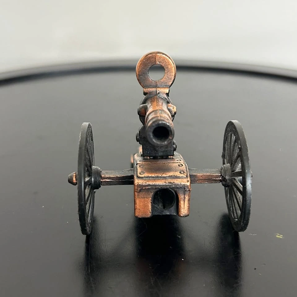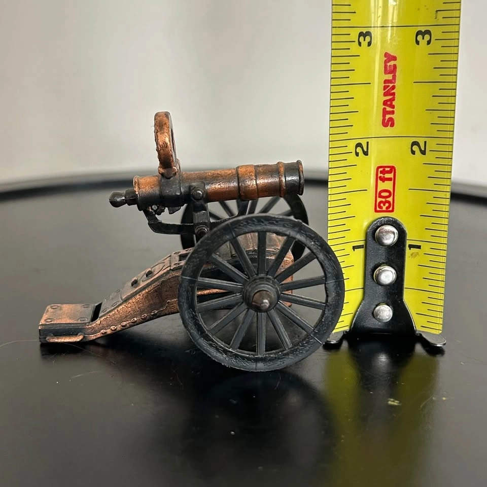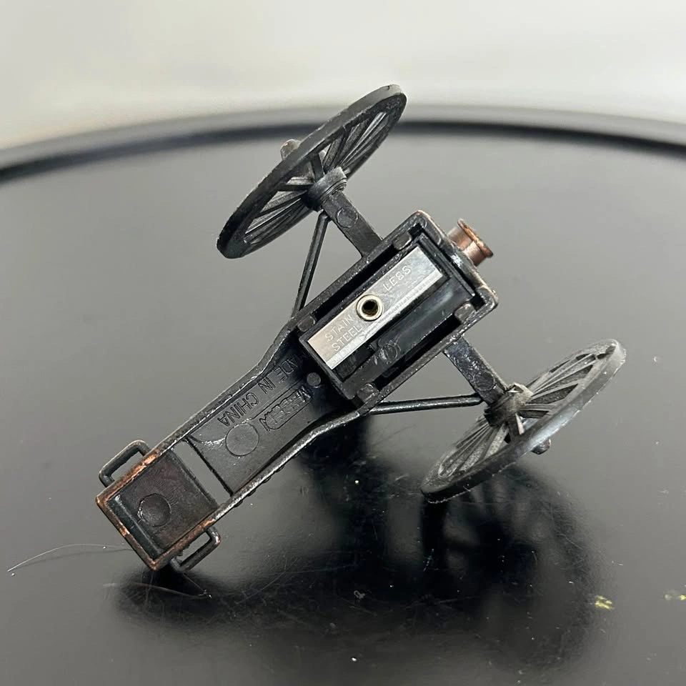 Unique vintage-style pencil sharpener designed as a miniature cannon. Made of metal with a black and copper finish and detailed rivet accents. Functional sharpener located underneath the base, marked “Made in China” and “Stainless Steel.” A fun collectible piece for history enthusiasts or vintage decor lovers — perfect for a desk display or as a small gift. Good used condition with light wear consistent with age. Pick up: Seton area, Calgary. See also my other lots. Open to your questions and suggestions. If necessary, I provide additional photos. These are not new things, so please look carefully at the photos and videos. Sizes are submitted on request and also using a tape measure in the photo.