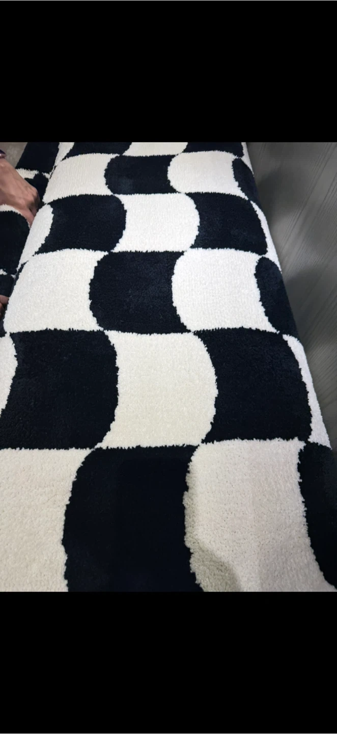 **NEW** BLACK AND WHITE CHECKERED RUG • 47" x 71" (120 x 180 cm)