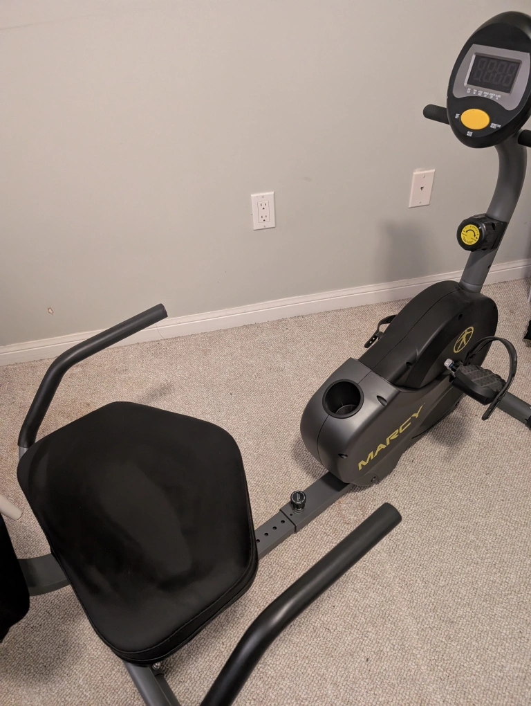 Selling a Marcy Recumbent Exercise Bike, model NS-40501R. It's in almost new condition and ready for a new home gym! Perfect for getting your cardio in without putting too much strain on your joints. It has a comfortable seat and easy-to-read display
