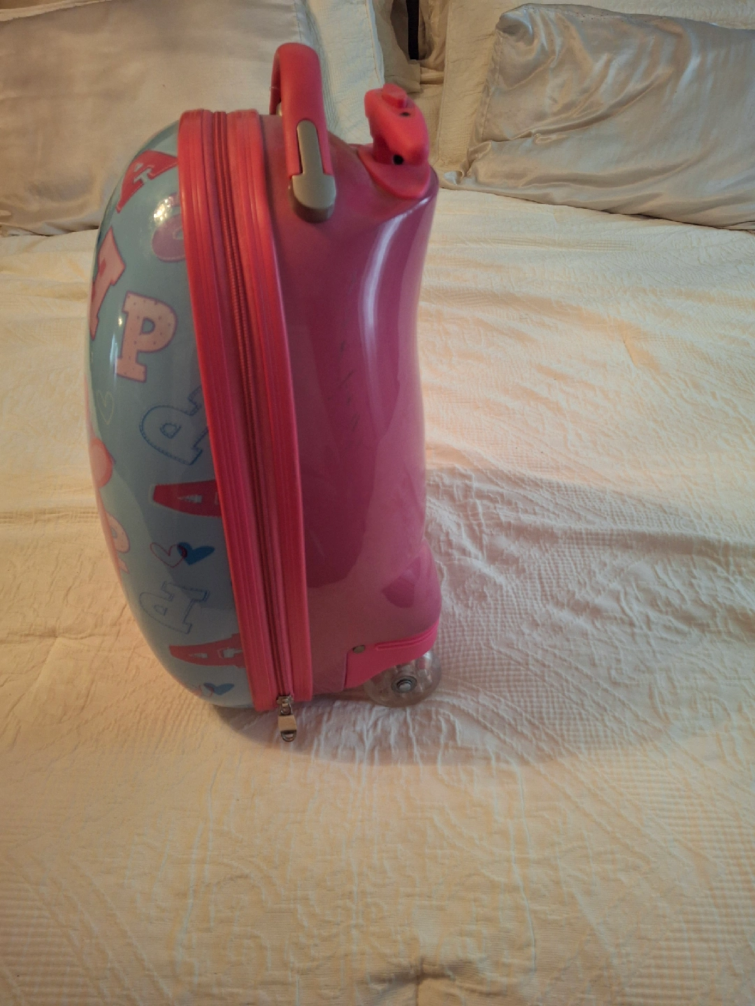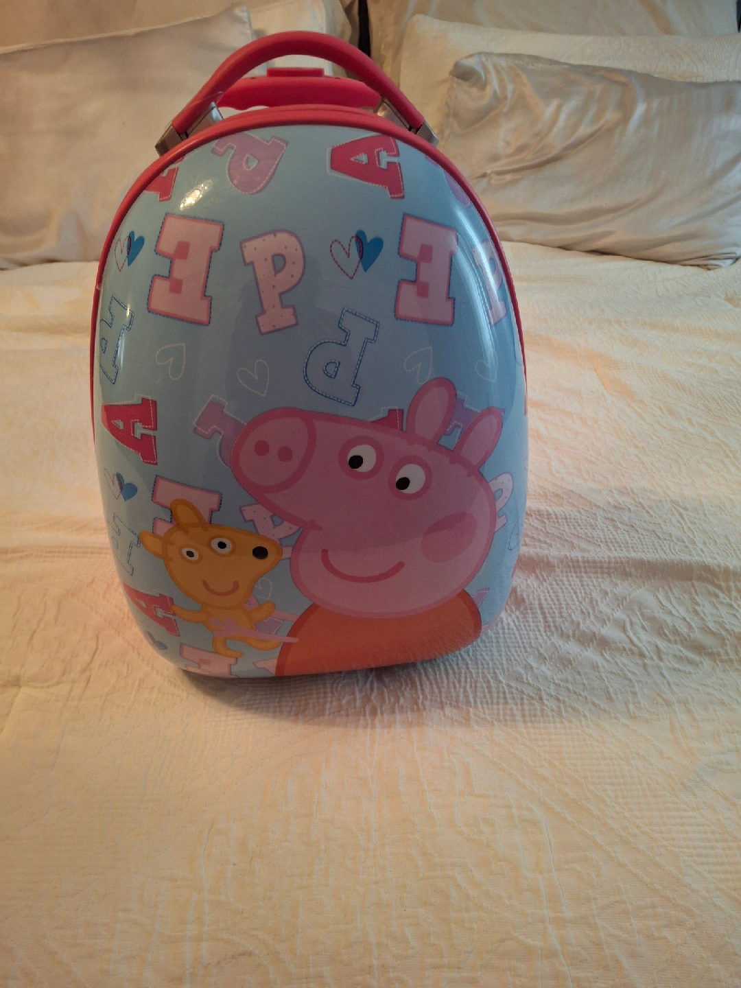 10This adorable Peppa Pig rolling luggage is perfect for your little one's travels! It features a cute Peppa Pig design in pink and blue. It's in great condition and ready for its next adventure!