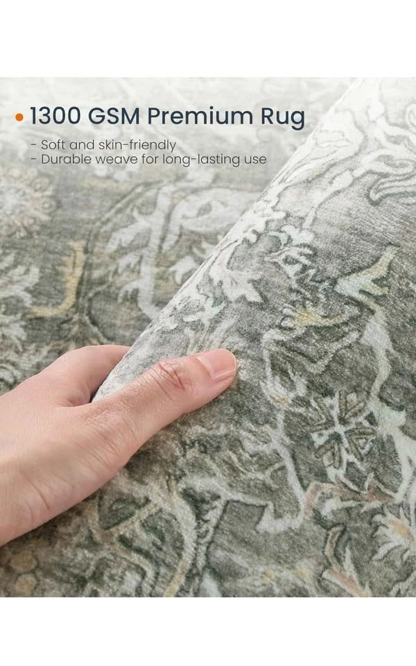 65Area Rug, 6x9 ft Living Room Rug, Vintage-Style, Non-Slip Carpet, Retro Accent, Home Decor, for Living Room, Bedroom, Machine Washable