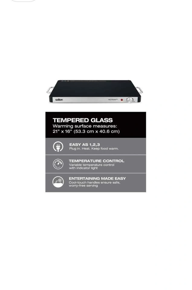65Salton Hotray XL Warming Tray | 21” x 16” Tempered Glass Surface | Variable Temperature Control | Cool-Touch Handles | for Parties, Gatherings, and Everyday Use | Easy-to-Clean | 400W | WT2148