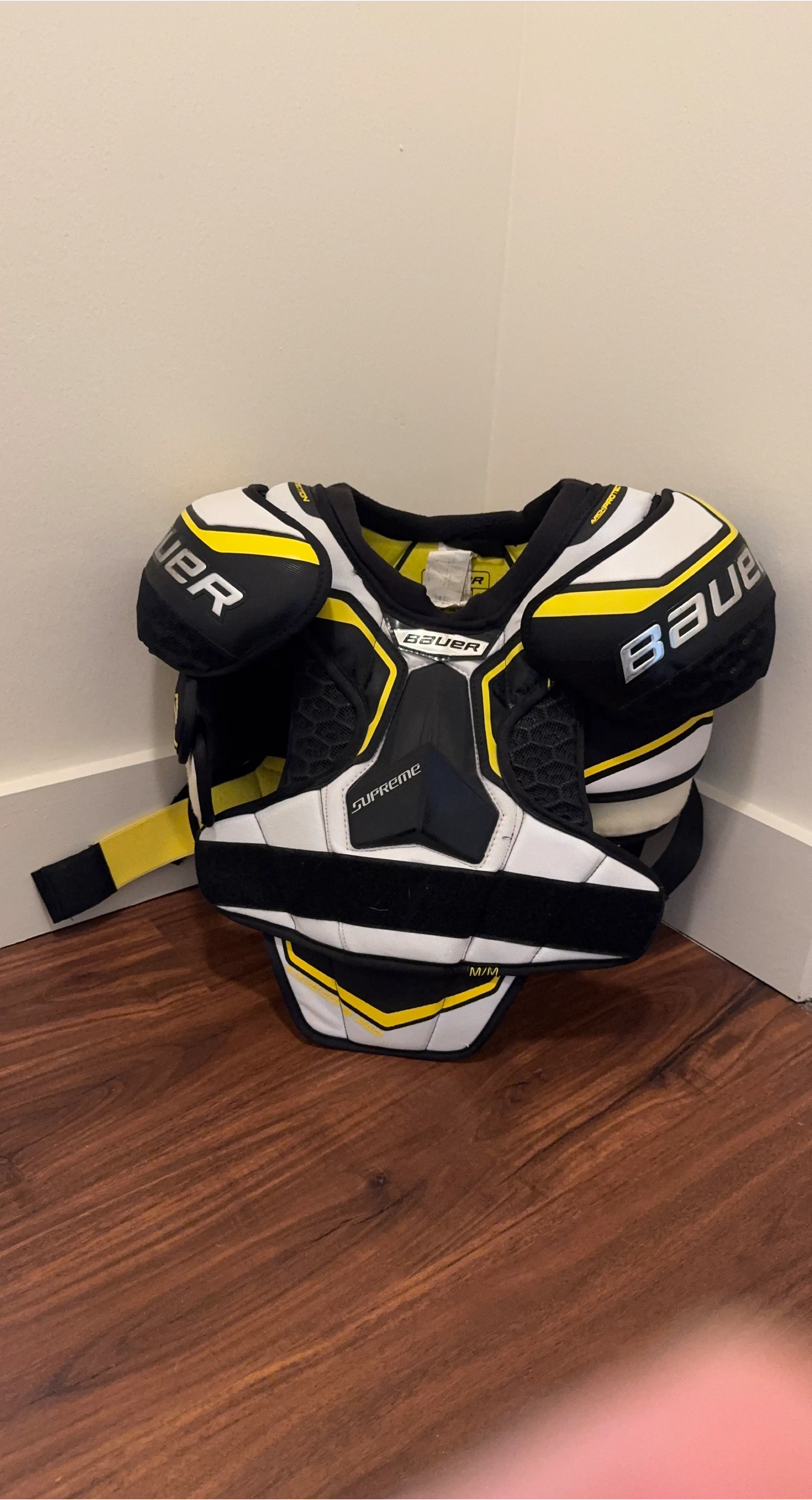 Selling a pair of Bauer Supreme hockey shoulder pads in size M/M. They're in good condition and ready for the ice!