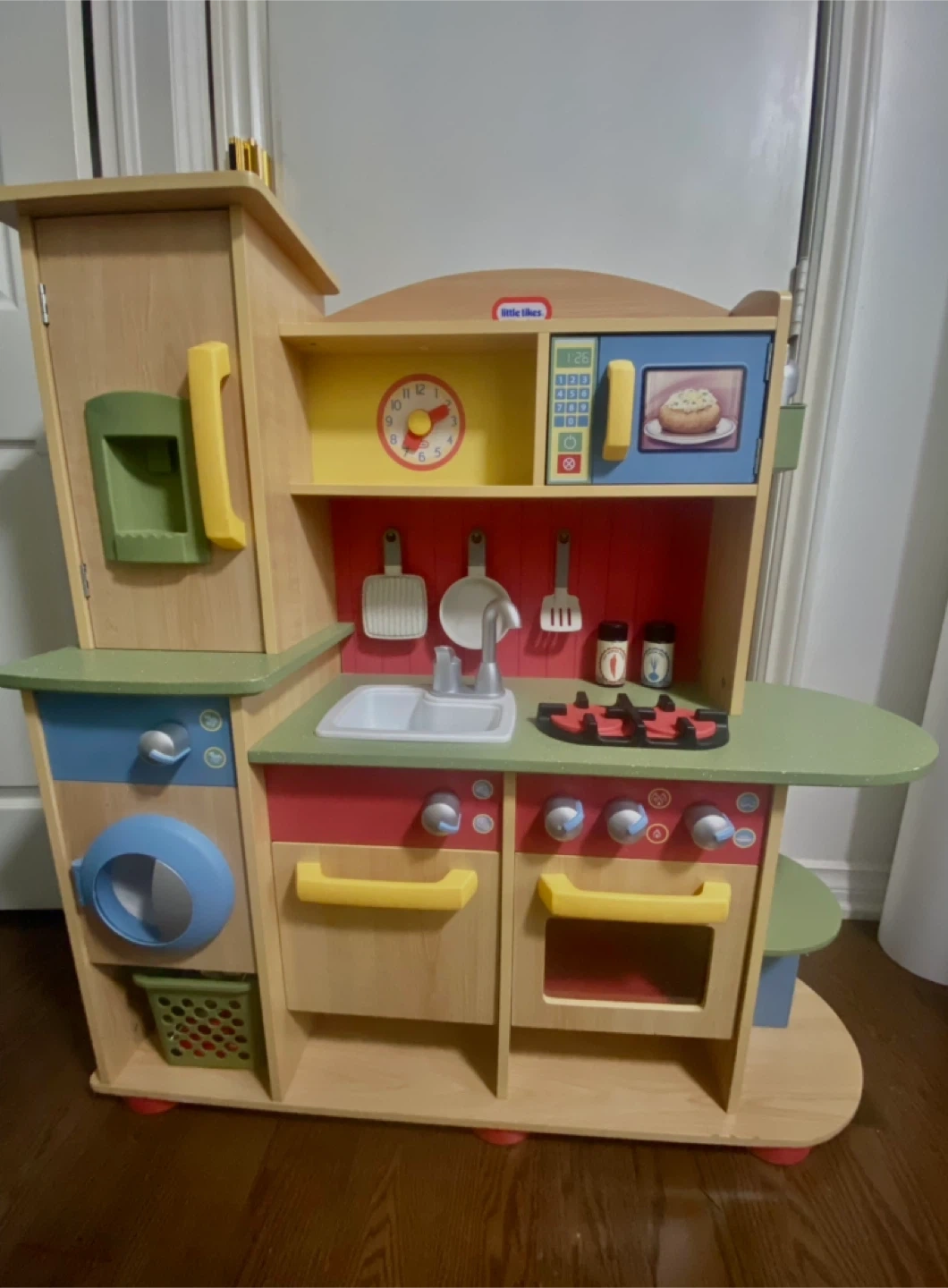 Product Size: 39.00"L x 30.00"W x 41.00"H Selling a Little Tikes kitchen set with lots of accessories! It’s in great condition and ready for a new home. Includes a variety of play food and kitchen utensils for hours of fun