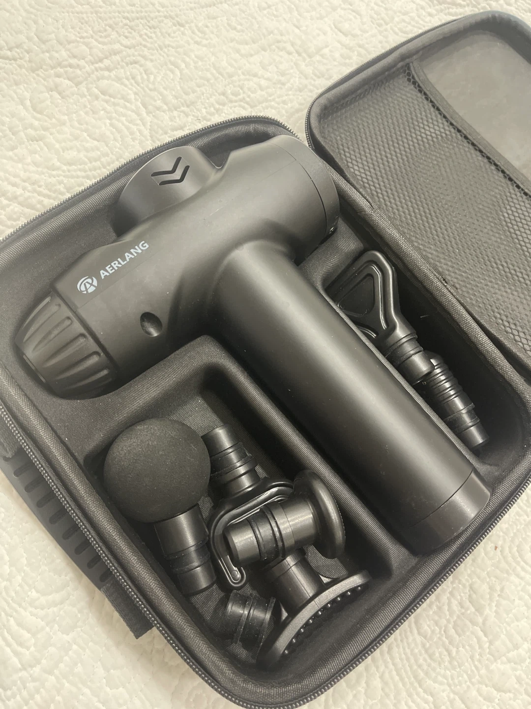 Selling an Aerlang massage gun in great condition! It comes with its original case and all the attachments you see in the picture. Perfect for relieving muscle soreness after a workout or a long day