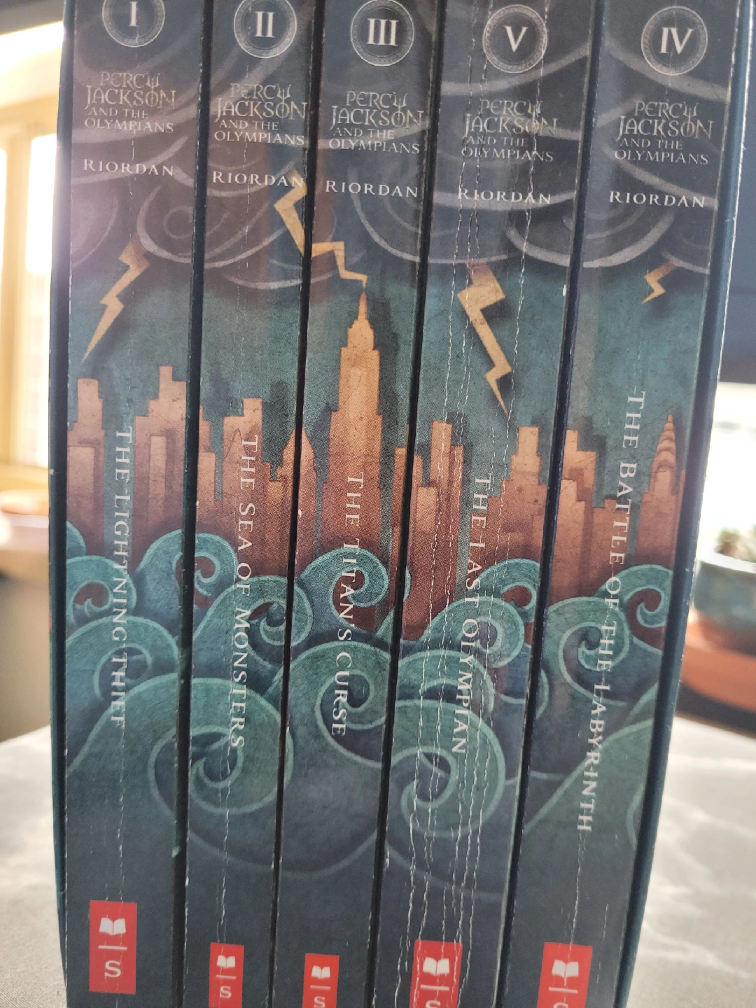 Selling the complete Percy Jackson and the Olympians series by Rick Riordan! This set includes all five books: The Lightning Thief, The Sea of Monsters, The Titan's Curse, The Battle of the Labyrinth, and The Last Olympian
