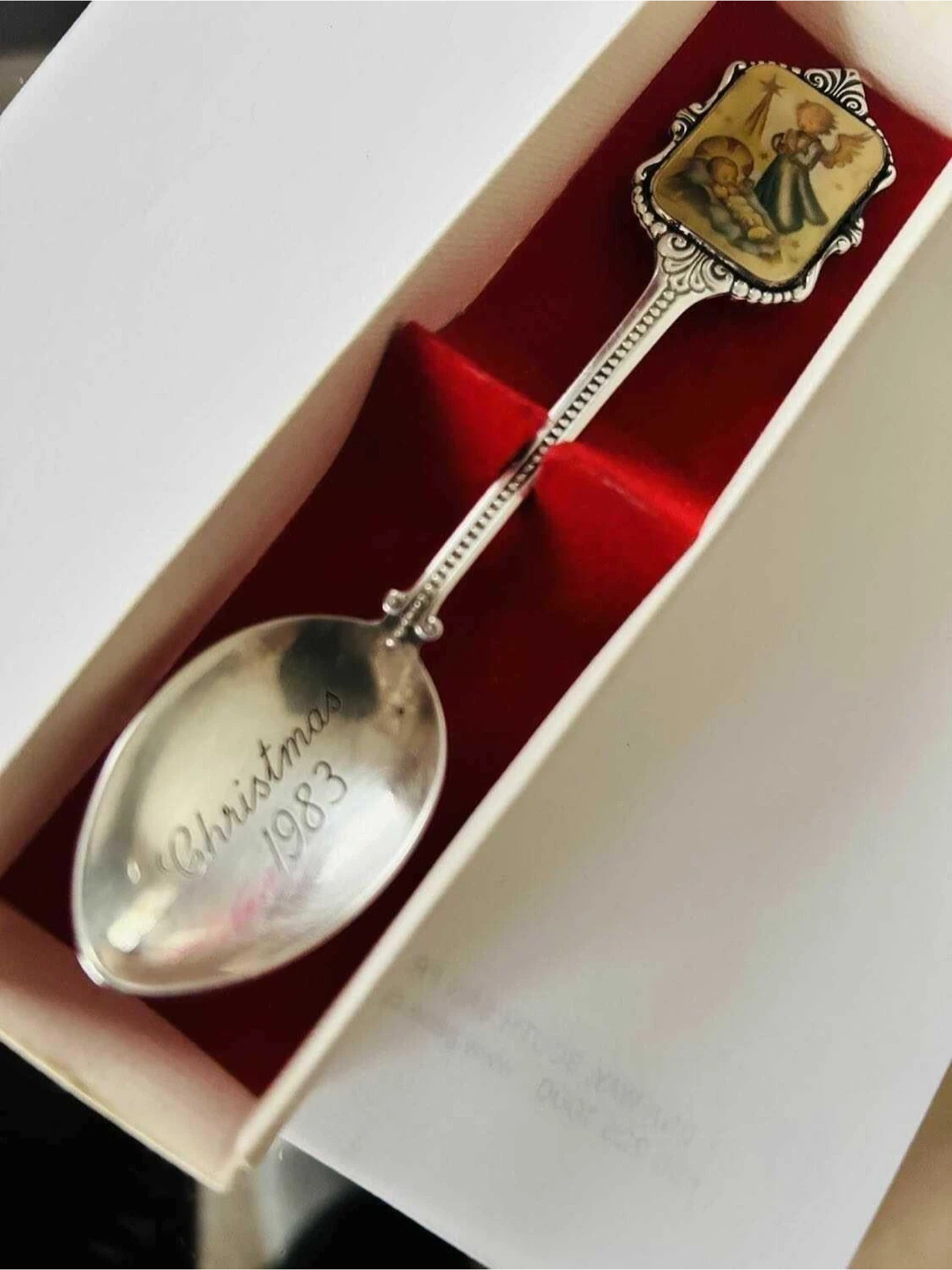 Hummel Limited Edition Christmas 1983 silver plated spoon. It comes in its original box. A lovely collectible item!