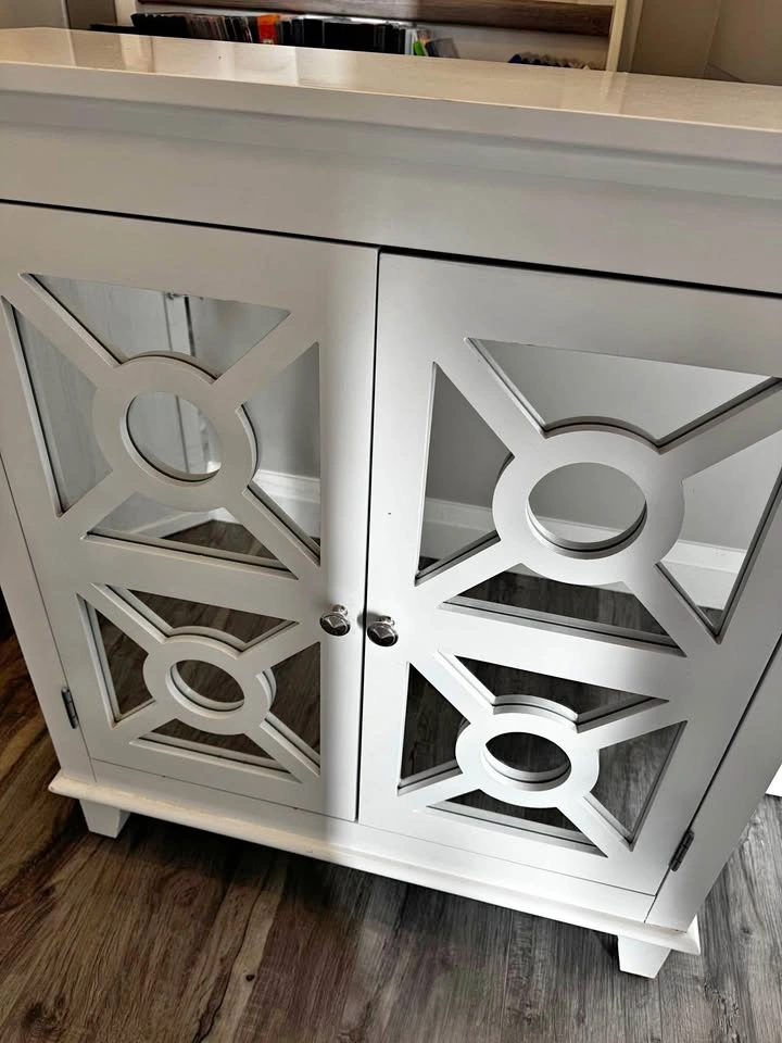 White mirrored door cabinet