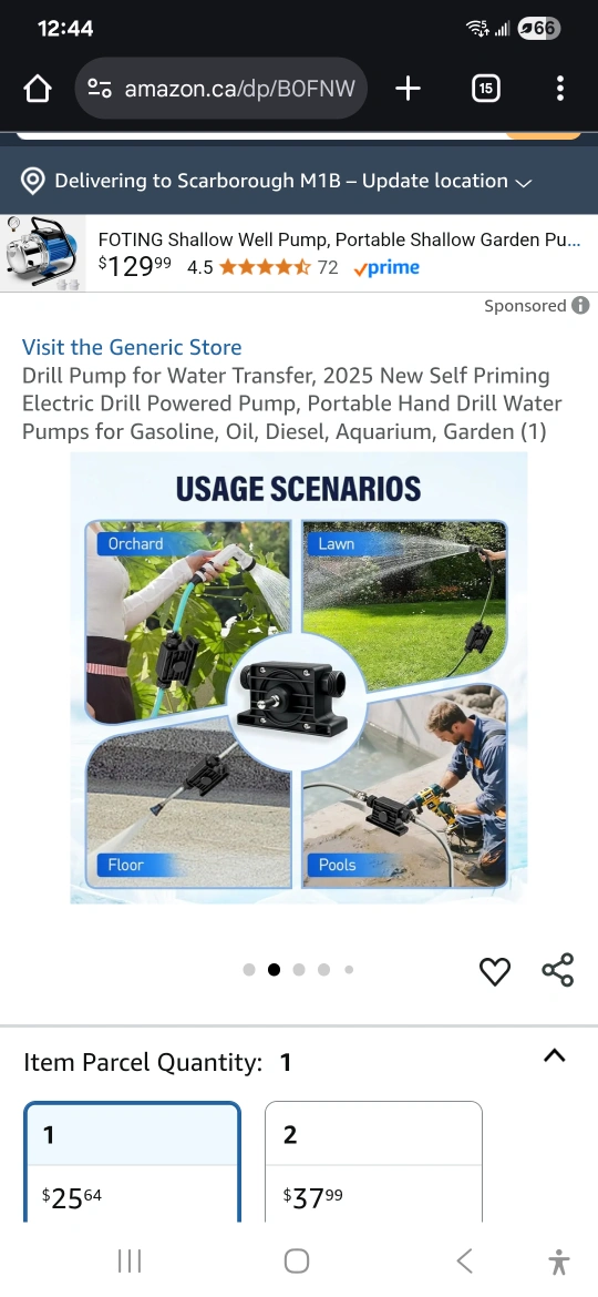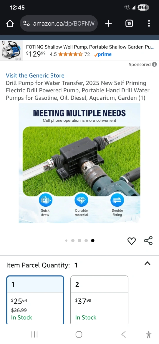Selling a FOTING Shallow Well Pump, perfect for various water transfer needs! It's a portable, self-priming drill water pump suitable for gasoline, oil, diesel, aquarium, and garden use. The box is included!