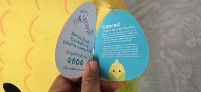 Looking to add a cute and cuddly friend to your collection? This Squishmallows plush is in NEW condition and ready for a new home! It's Conrad the Corn, and he's super soft and perfect for snuggling. He's got a sweet smile and is just waiting to be your new best buddy. Big size 16 inch