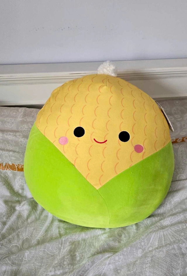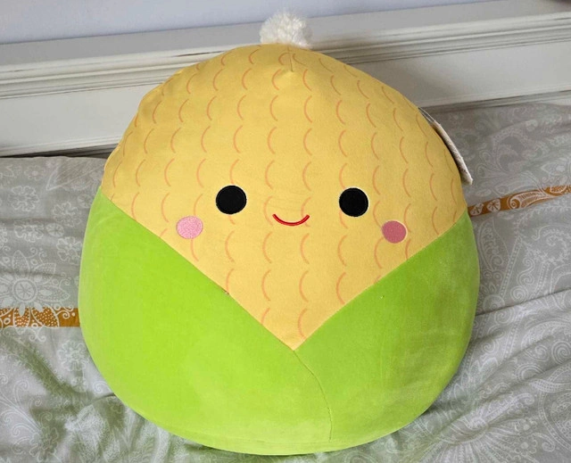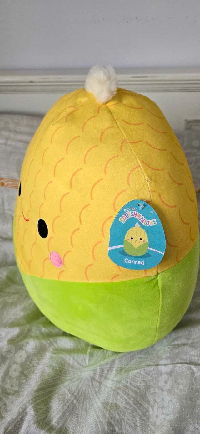 Looking to add a cute and cuddly friend to your collection? This Squishmallows plush is in NEW condition and ready for a new home! It's Conrad the Corn, and he's super soft and perfect for snuggling. He's got a sweet smile and is just waiting to be your new best buddy. Big size 16 inch