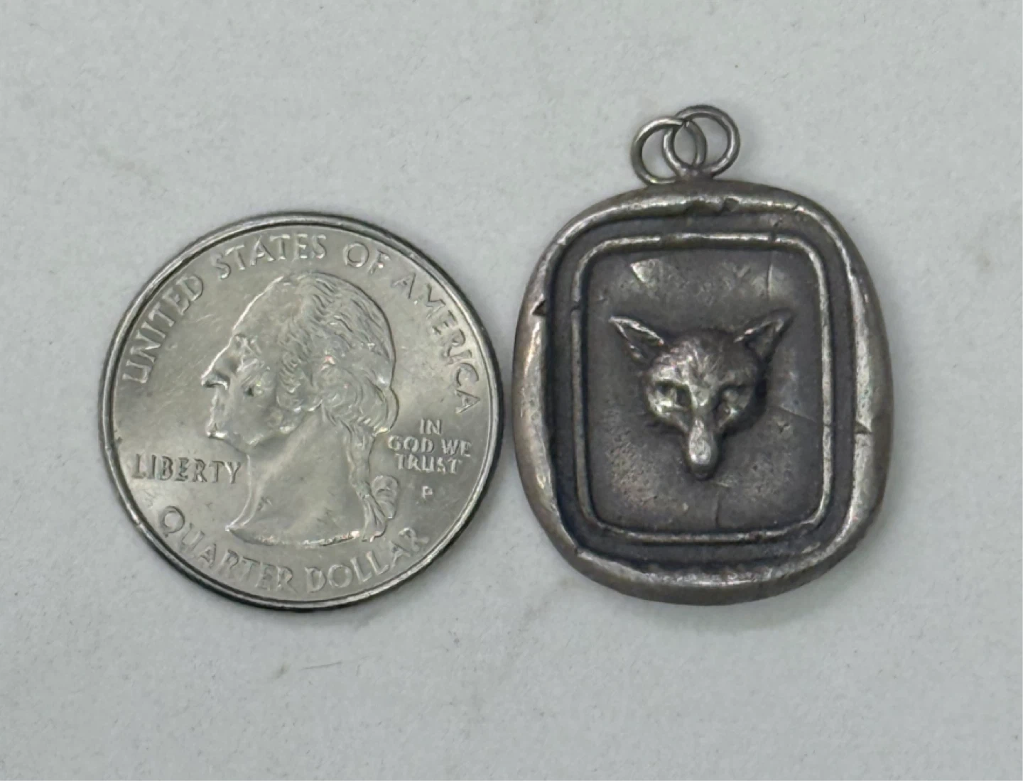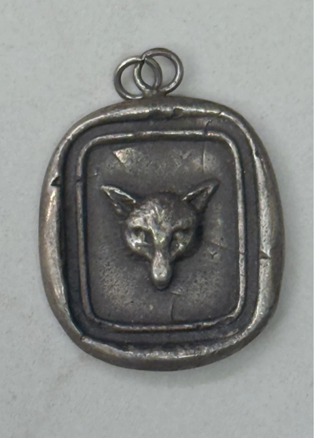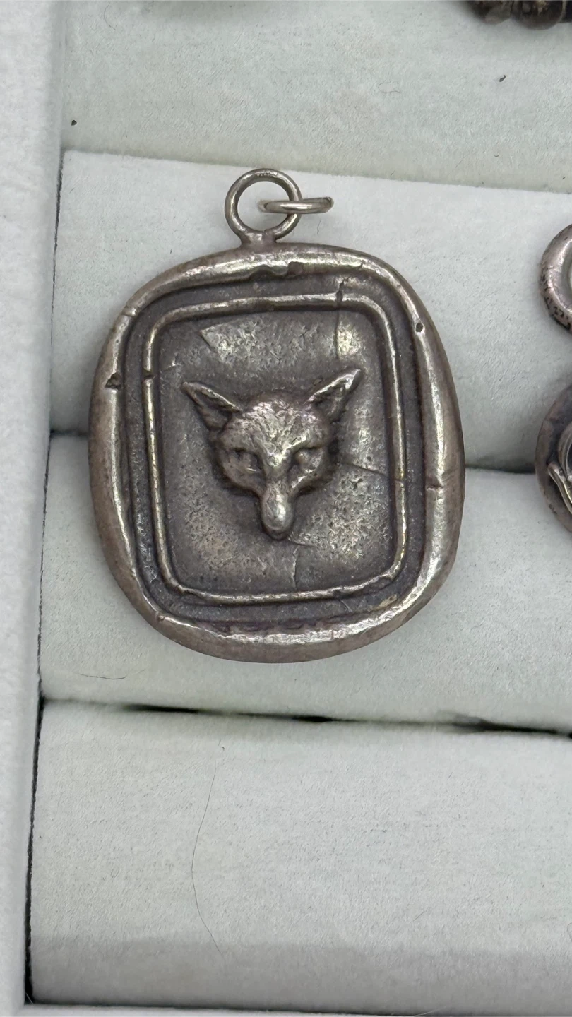 Selling a Purho sterling silver fox pendant. It has a stamp of 'Purho' and '925' on the back. The pendant features a fox head design on the front.