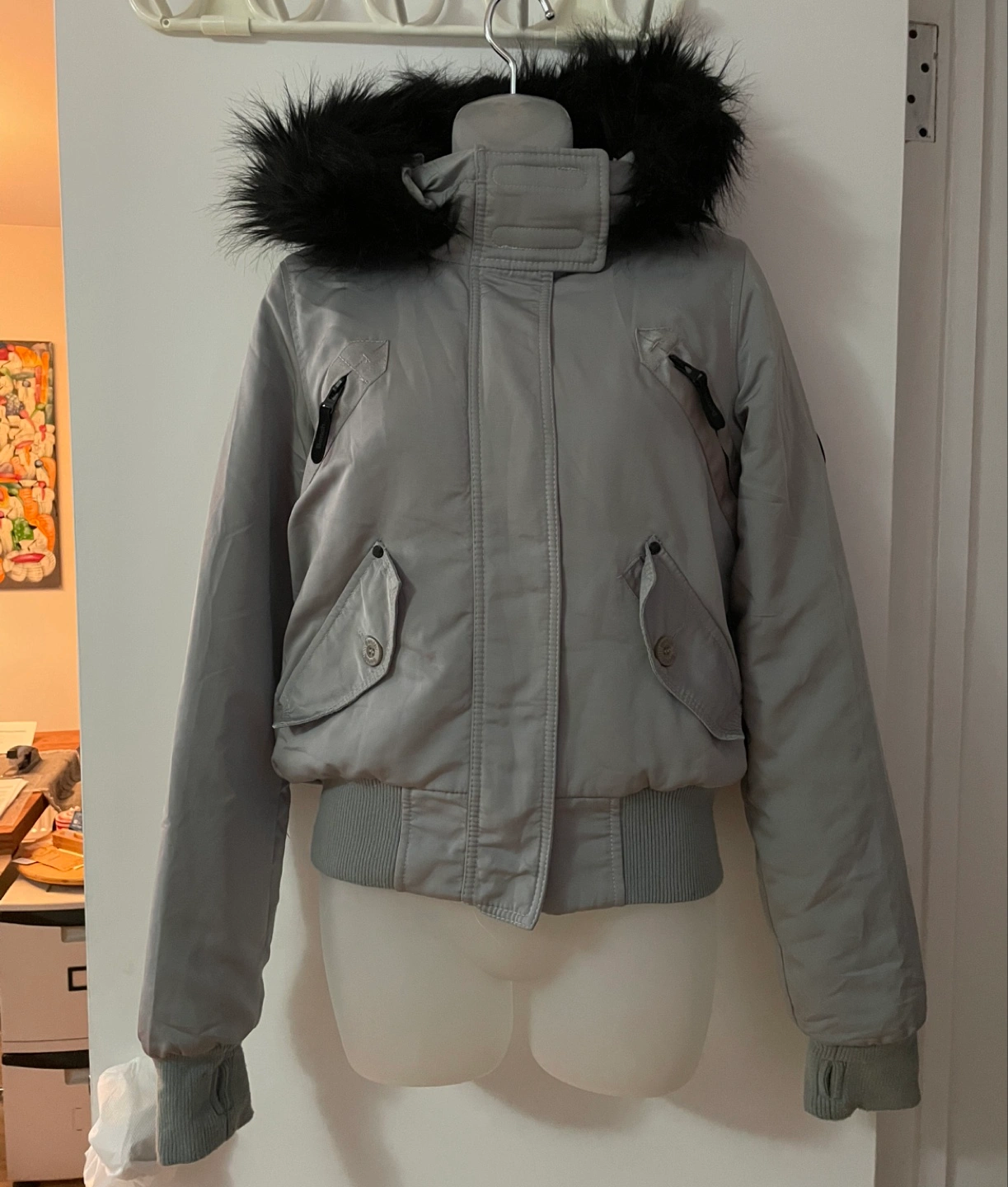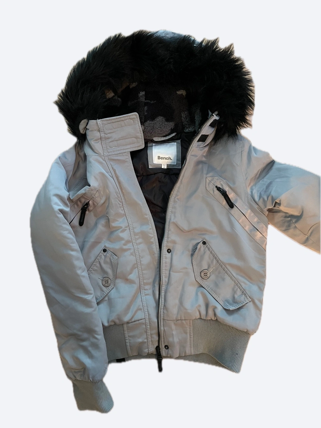 Bench. winter jacket in a lovely grey colour, perfect for the cold weather! It features a stylish faux fur hood. Hood is removable.