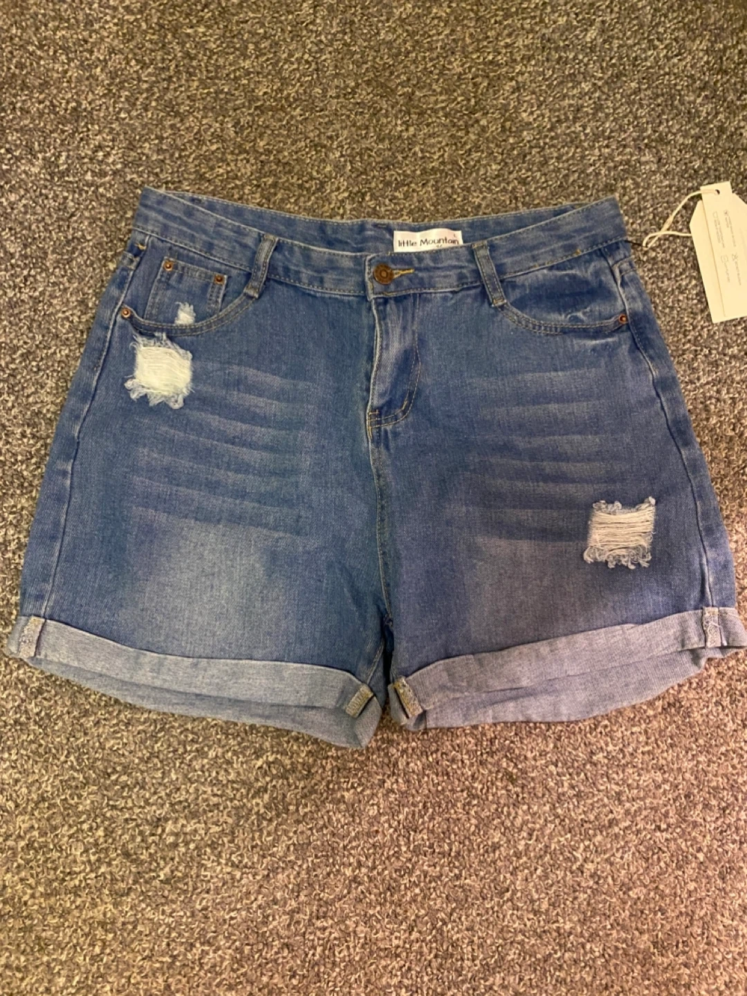 29Cute denim shorts from Little Mountain, Cordova model! They're a size large and feature a stylish, slightly distressed look. Originally bought for $58.00. PICK UP: DUNDAS & LISGAR, TORONTO