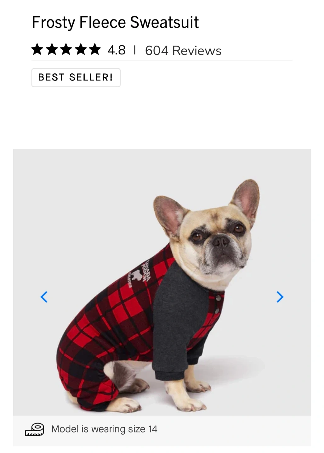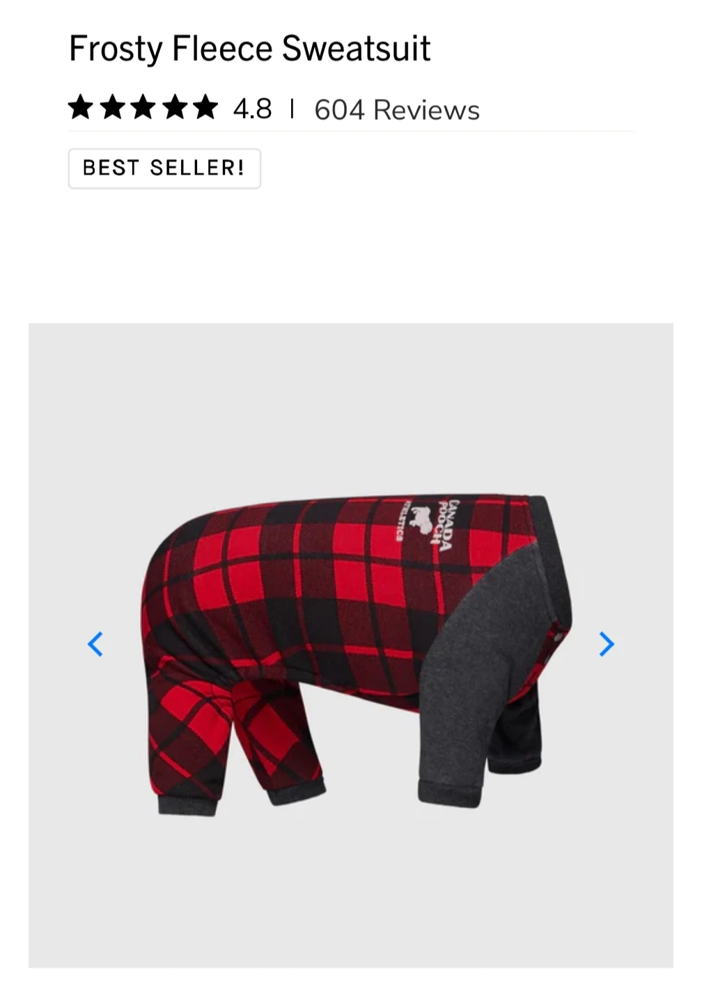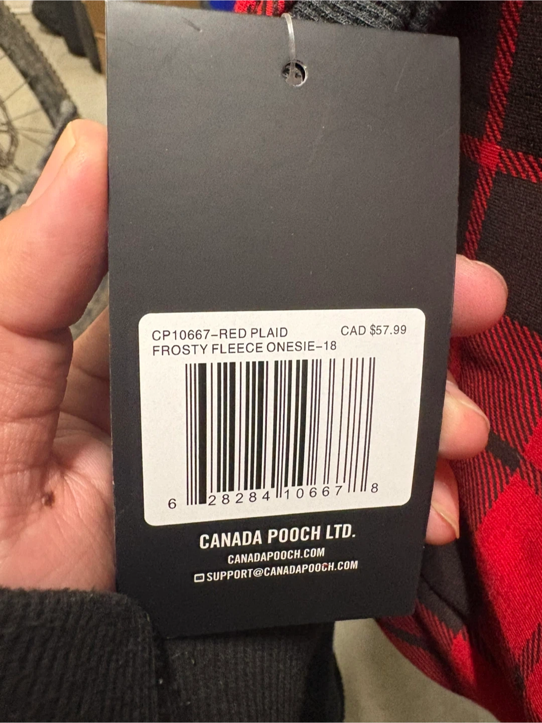 Keep your furry friend cozy this winter with a Canada Pooch Frosty Fleece Onesie! It's in a red plaid pattern and size 18 & 16 .