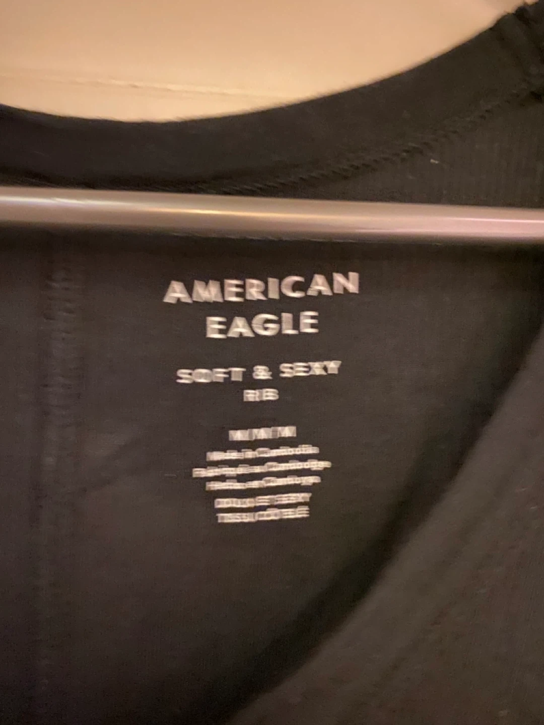 29Selling an American Eagle black T-shirt. It's a Soft & Sexy rib style in size medium. The material feels great! PICK UP: DUNDAS & LISGAR, TORONTO