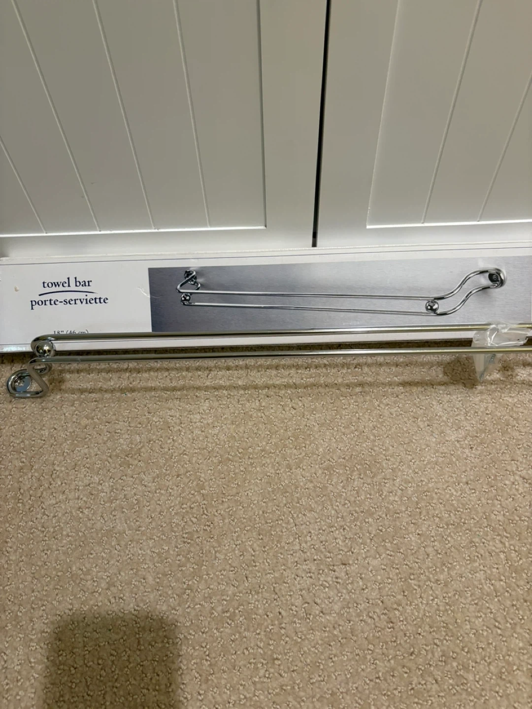 Buy & SellTowel Bar - 18 inch 2 piecesTowel Bar - 18 inch 2 pieces$5Selling a towel bar that's 18 inches long. It's still in its original packaging, so it's brand new!ConditionNewWHERE TO MEETSomersetView MapSELLERChrisSomerset201 review0 chats·0 favorites·4 views