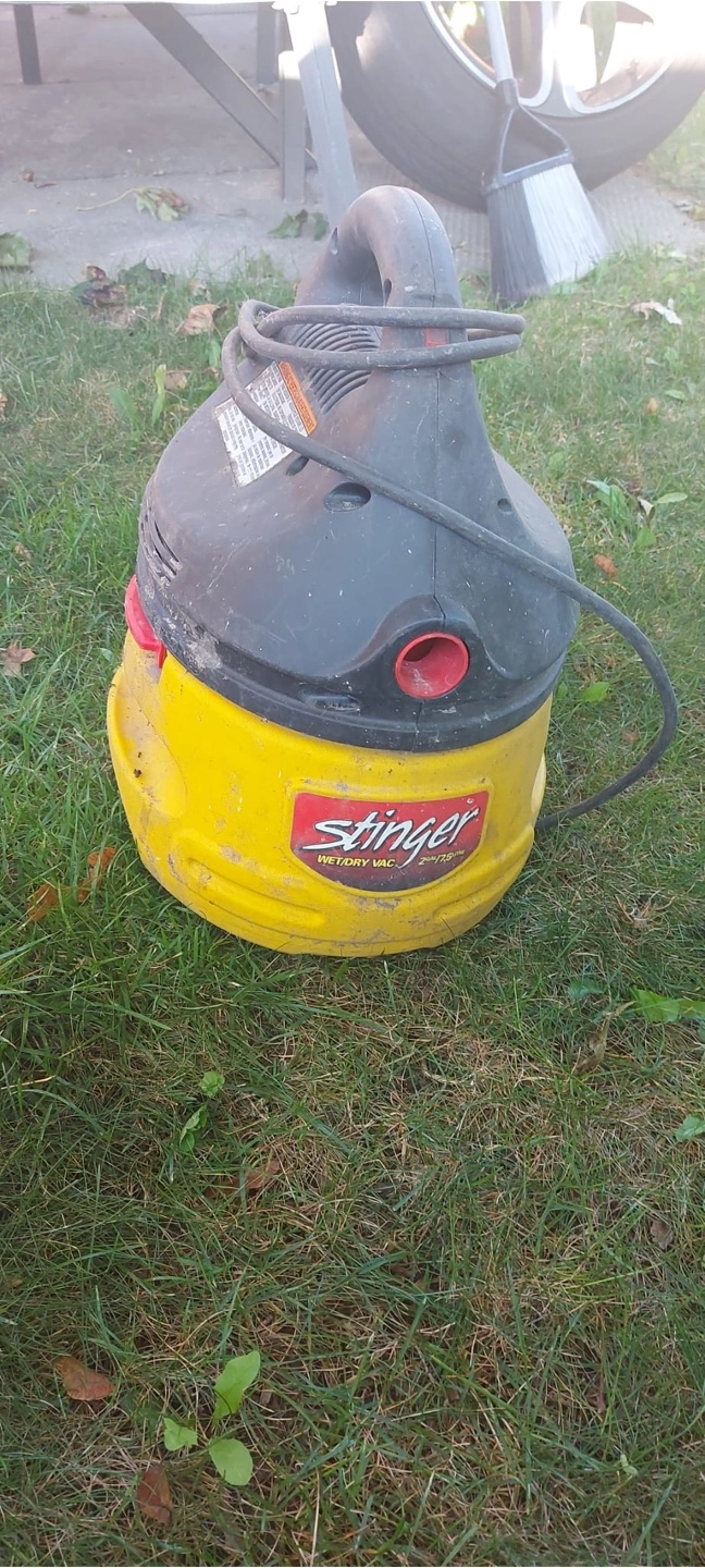 Selling a Stinger Wet/Dry Vac. It's in used condition, but still works great for cleaning up messes! Perfect for the garage or workshop