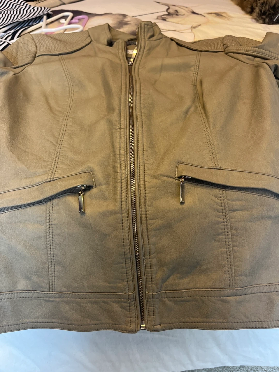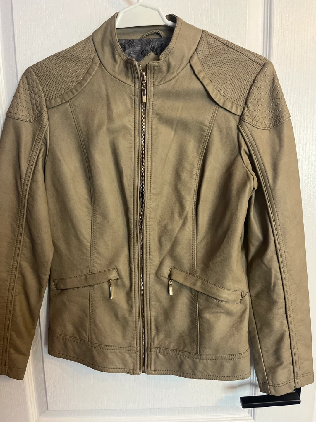Cleo faux leather jacket in size XS. It's a beige colour and in great condition. Perfect for adding a bit of edge to any outfit! Pet and smoke free home. Pick up in Stittsville.