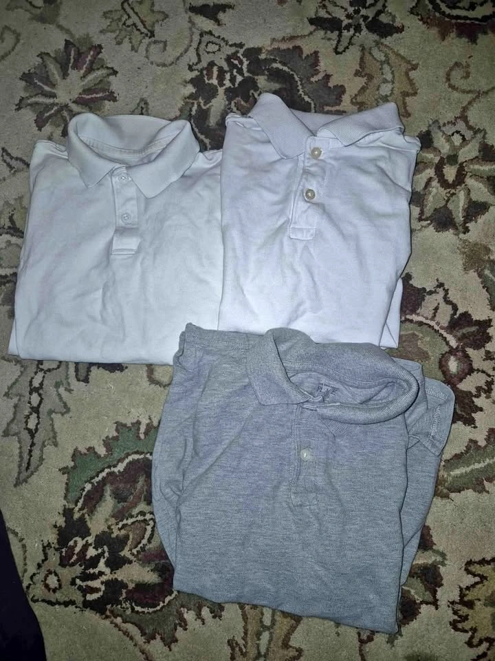 25Short sleeve polos. Size 10/12 boys. 2 white and 1 grey. Great condition. 2 Children's Place and 1 George brand. Thickson and Taunton. Pet and smoke free home. No holds. Fastest pickup. $2 each or all for $5