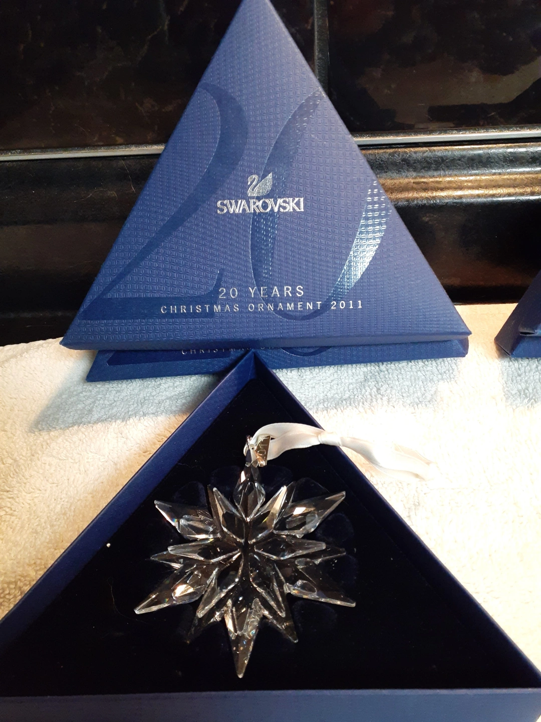 I have 12 annual edition Swarovski ornaments - 2011, 2012, 2013, 2014, 2016, 2017, 2018, 2019, 2020, 2021, 2022 & 2023. All 12 ornaments are in the original boxes. Asking $1,000 for this collection.