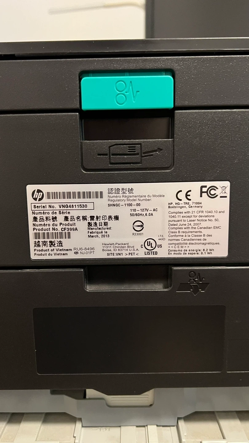 Selling a used HP LaserJet Pro 400 M401dne printer. It comes with a toner cartridge installed.