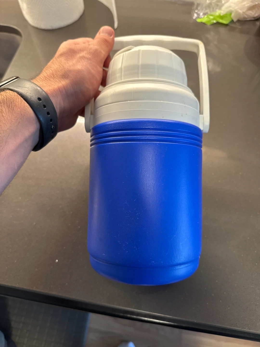 39Keep your drinks cold with this Coleman beverage cooler! It's in great shape and ready for your next picnic, camping trip, or sports event. The cooler is blue and white, and features the Coleman logo on the lid.