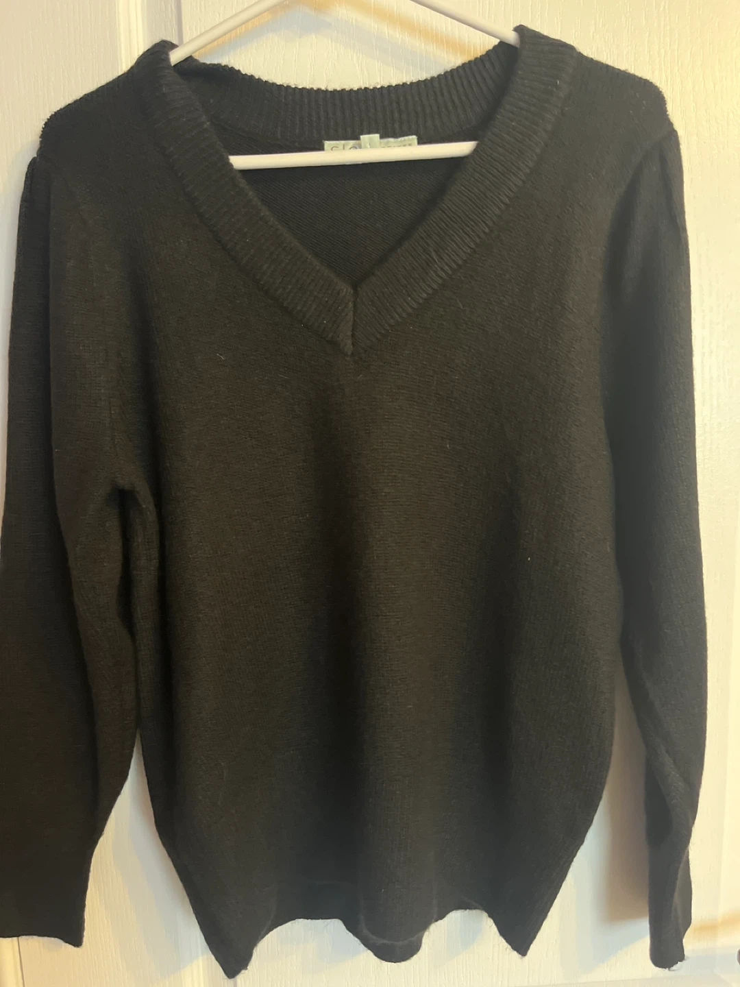 Selling a gently used Cleo Petites black V-neck sweater in size M. It's in great condition and perfect for layering or wearing on its own. A classic and versatile piece for your wardrobe! Pet and smoke free home. Pick up in Stittsville.