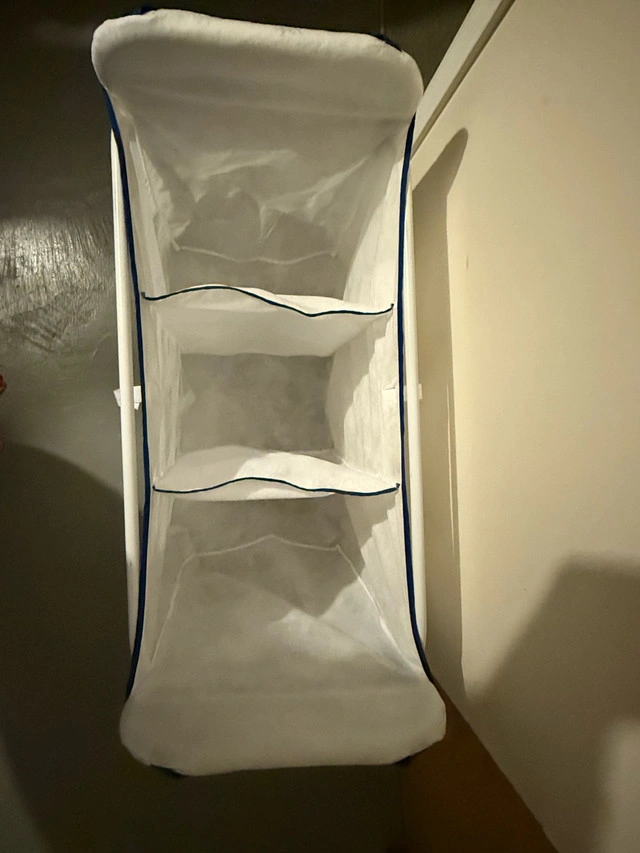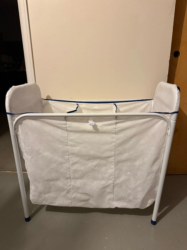 41Laundry sorter with three compartments. Sorter is removable and machine washable. Measurements: Each compartment is 10” wide x 13” in depth and 22” high Overall measurements are 30.5” high x 29.5” across and total depth 16” from front bar of sorter to back bar of sorter. Pickup evenings and weekends. Closest major intersection is Hurontario Street and Central Parkway in Mississauga.