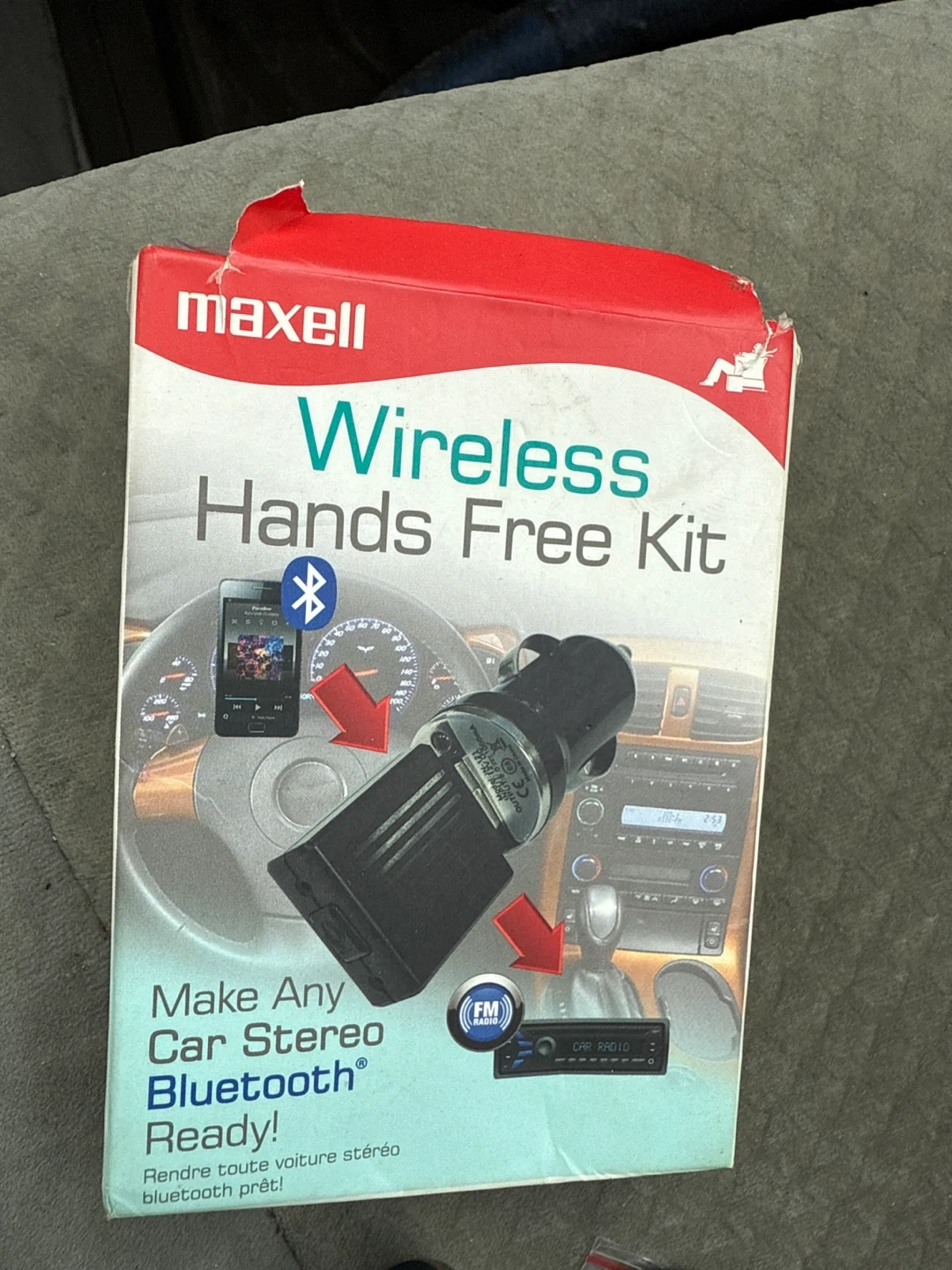 Selling a Maxell Wireless Hands Free Kit! Make any car stereo Bluetooth ready. It adjusts your FM radio to 107.9 and plugs a USB dongle into a 12 volt plug. Also connects to a device via Bluetooth.