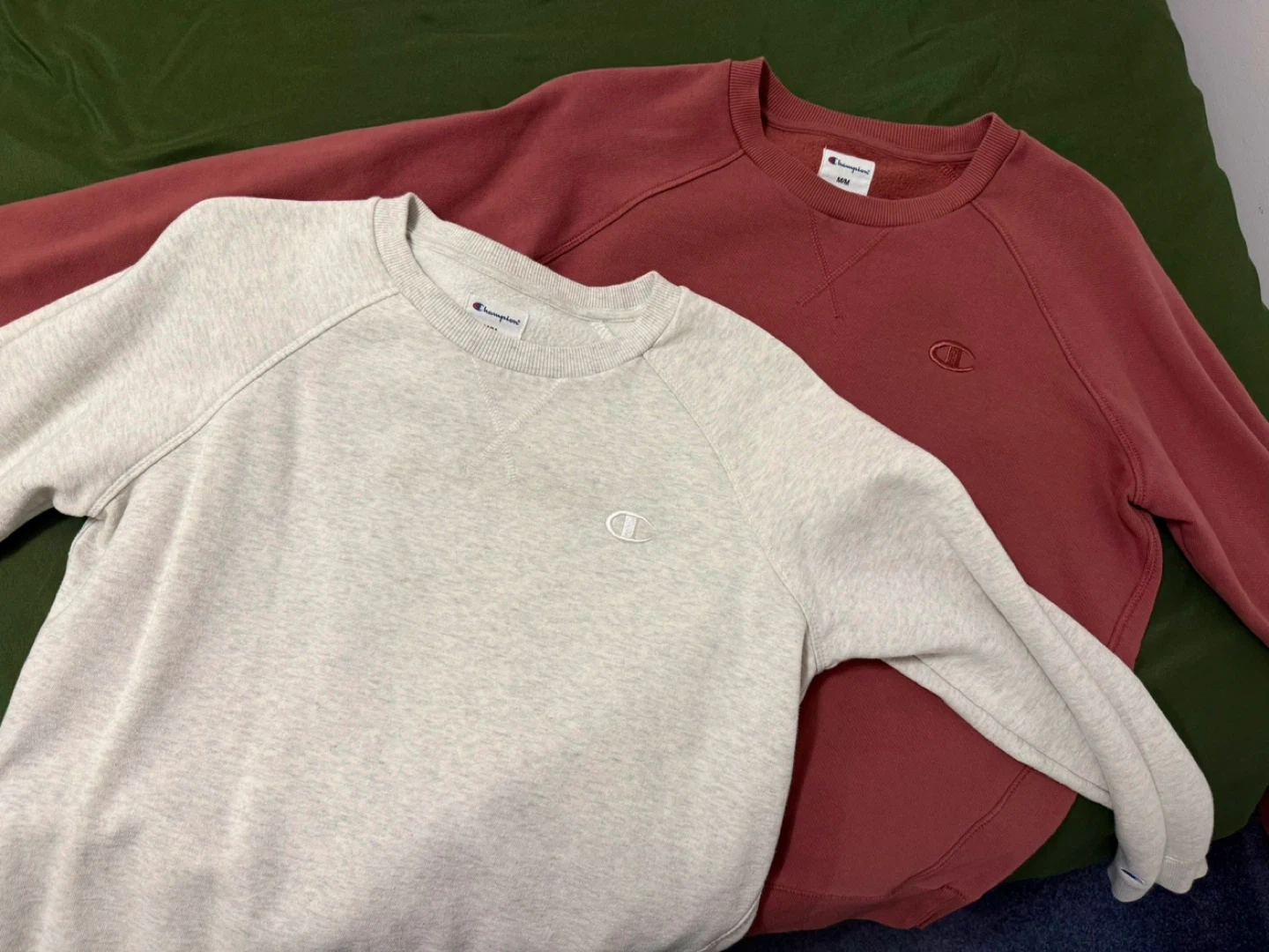 Selling a couple of Champion crewneck sweatshirts! One is a nice heather grey and the other is a cool reddish colour. Both are size medium and in great condition. Perfect for cozying up or layering!