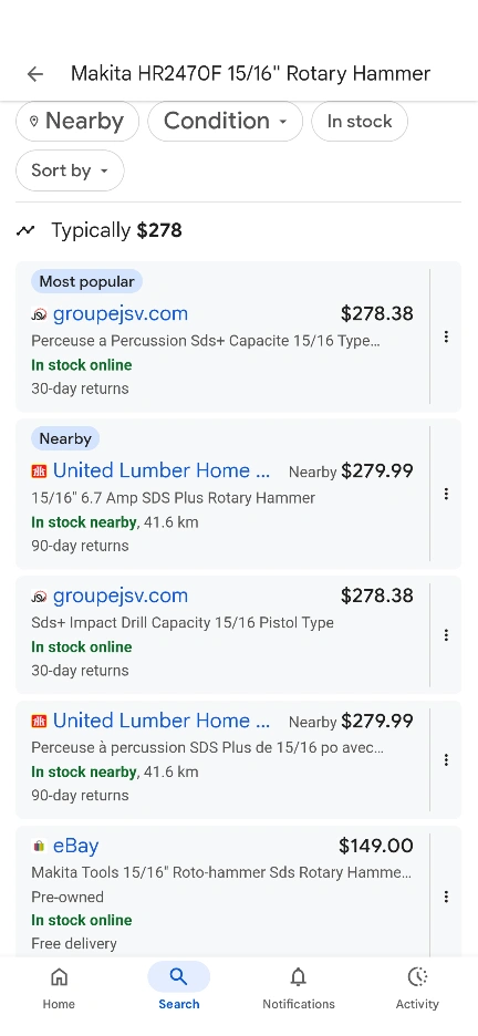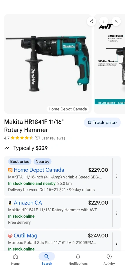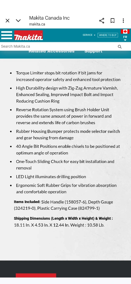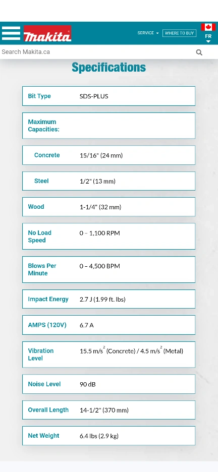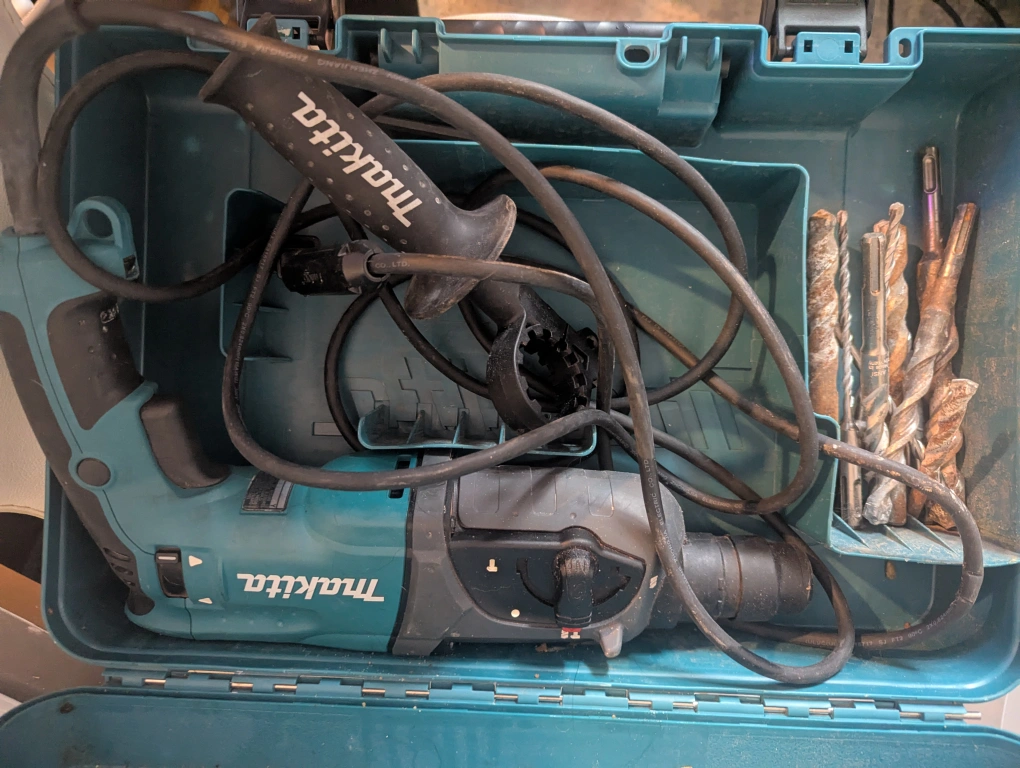Selling a Makita HR2470F 15/16" Rotary Hammer Drill. It accepts SDS-PLUS bits and features variable speed and reversible operation.