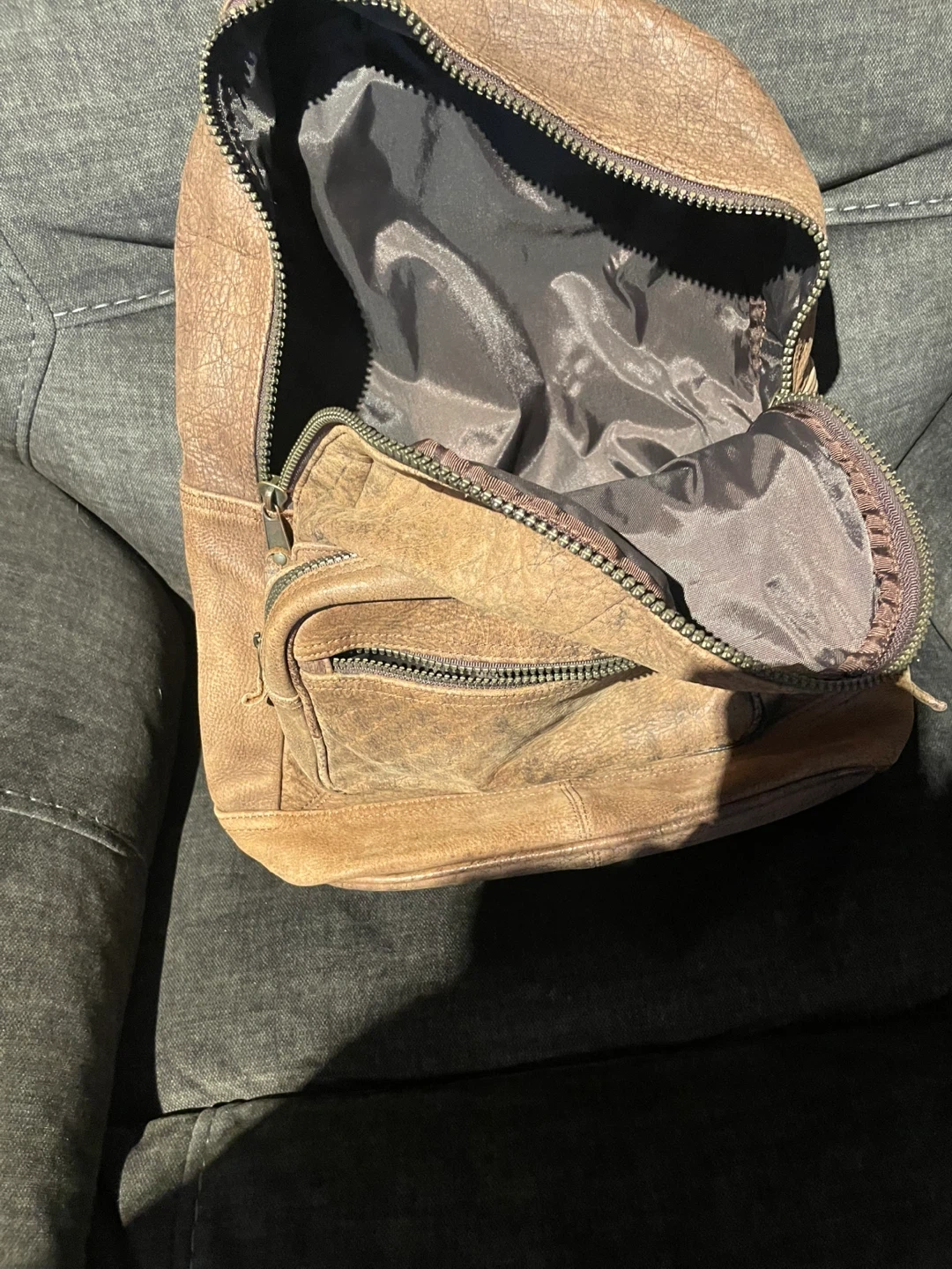 Selling a brown leather backpack. It has some signs of wear but is still in good condition and has lots of life left! Perfect for everyday use or travel