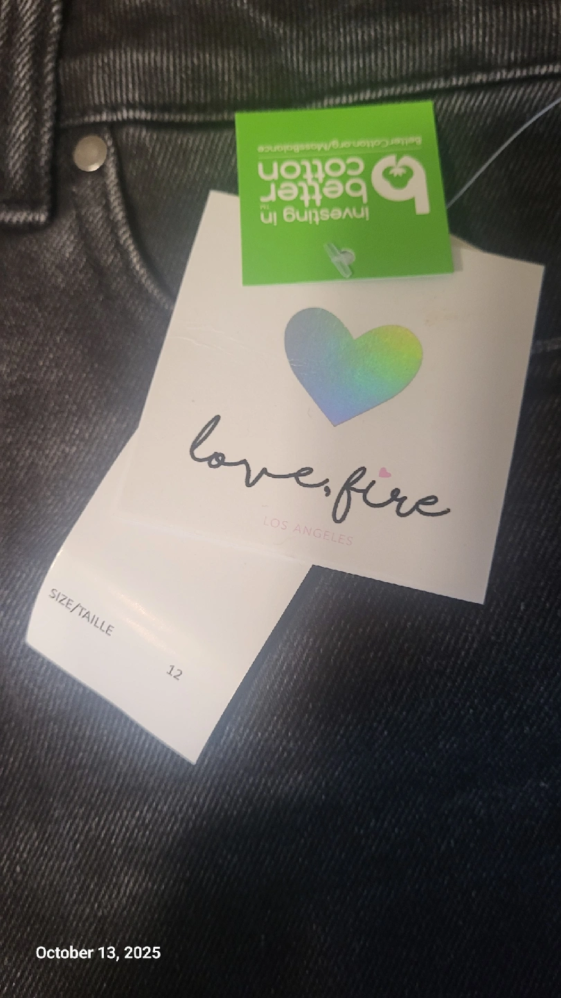 Selling a pair of Love Fire jeans in size 12! They are NEW and ready for a new home. The jeans are a stylish washed black, baggy straight keg. Perfect for everyday wear!