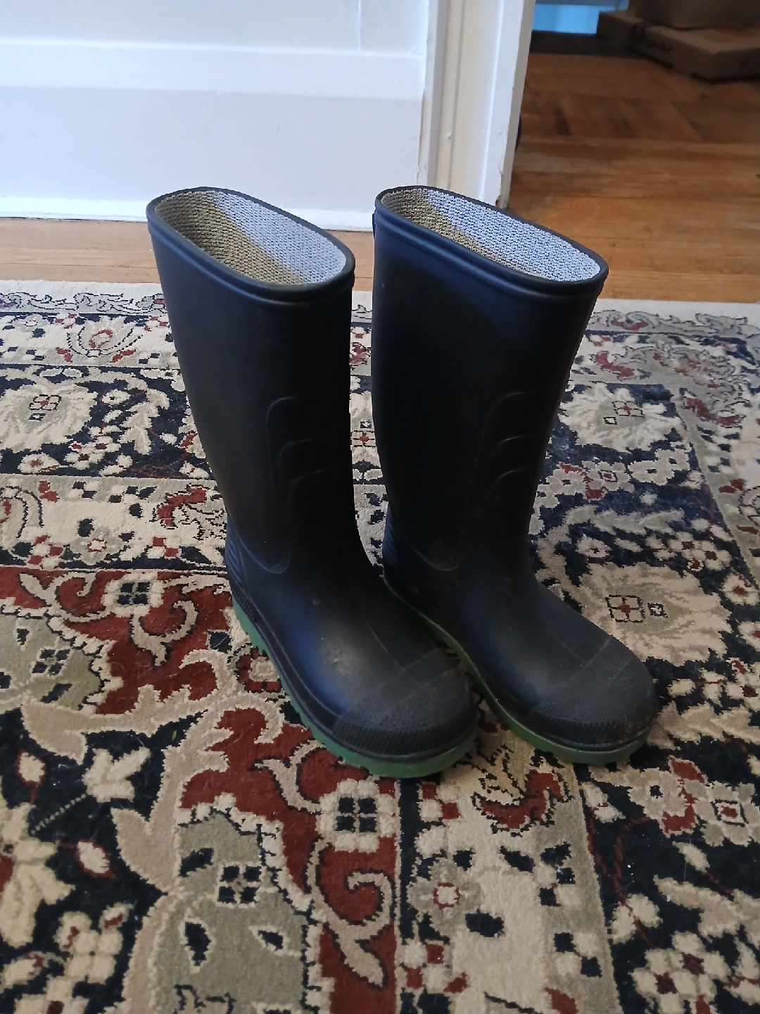 Buy & SellKids rain bootsKids rain boots$3Kids rain boots in black and camo-green, kids size 11. Lightly worn, very durable, and clean. Lots of wear left.ConditionGoodAge3-8 yearsWHERE TO MEETAllenbyView MapSELLERverifiedLeslieAllenby25715 reviews0 chats·0 favorites·14 views