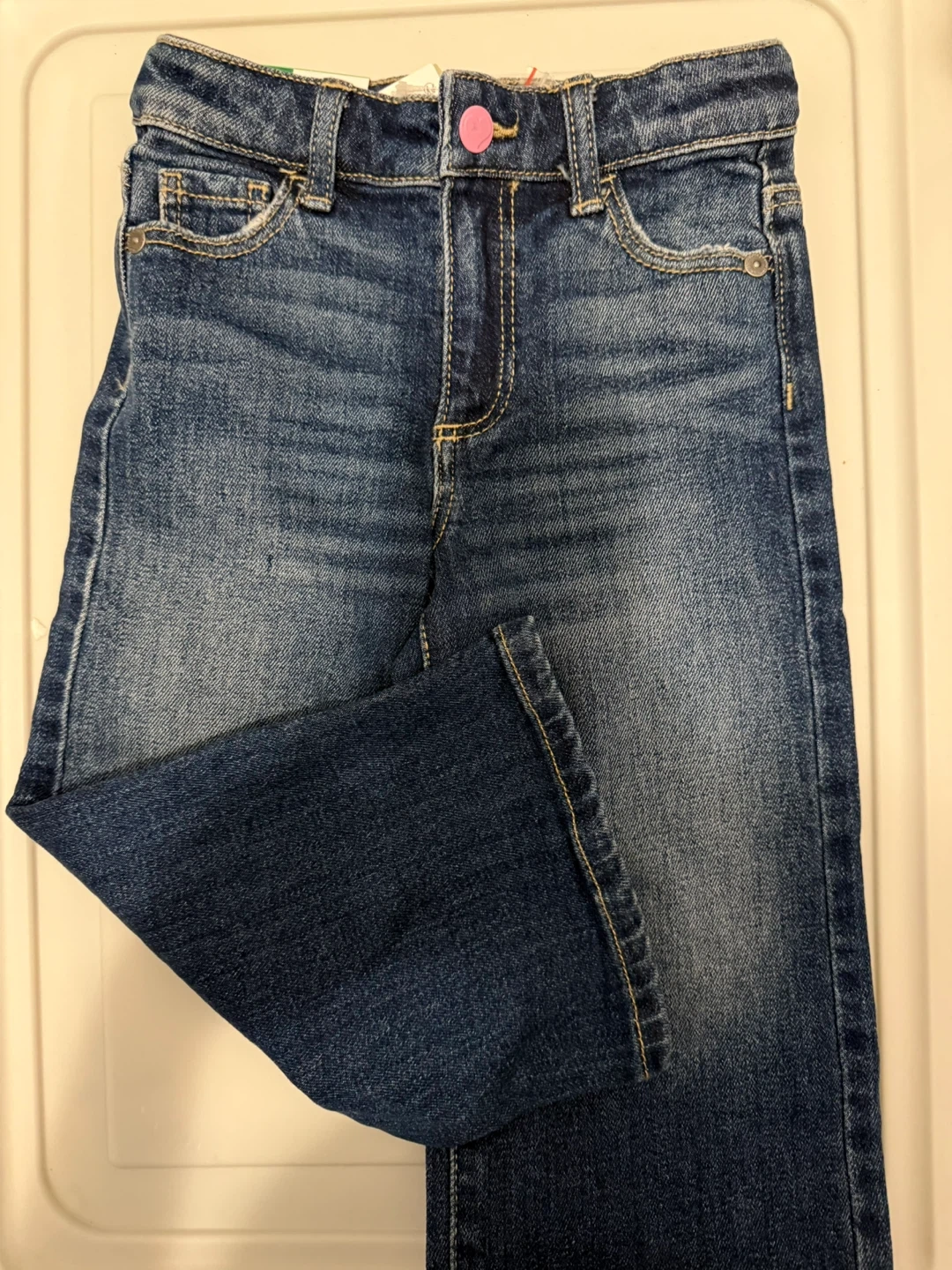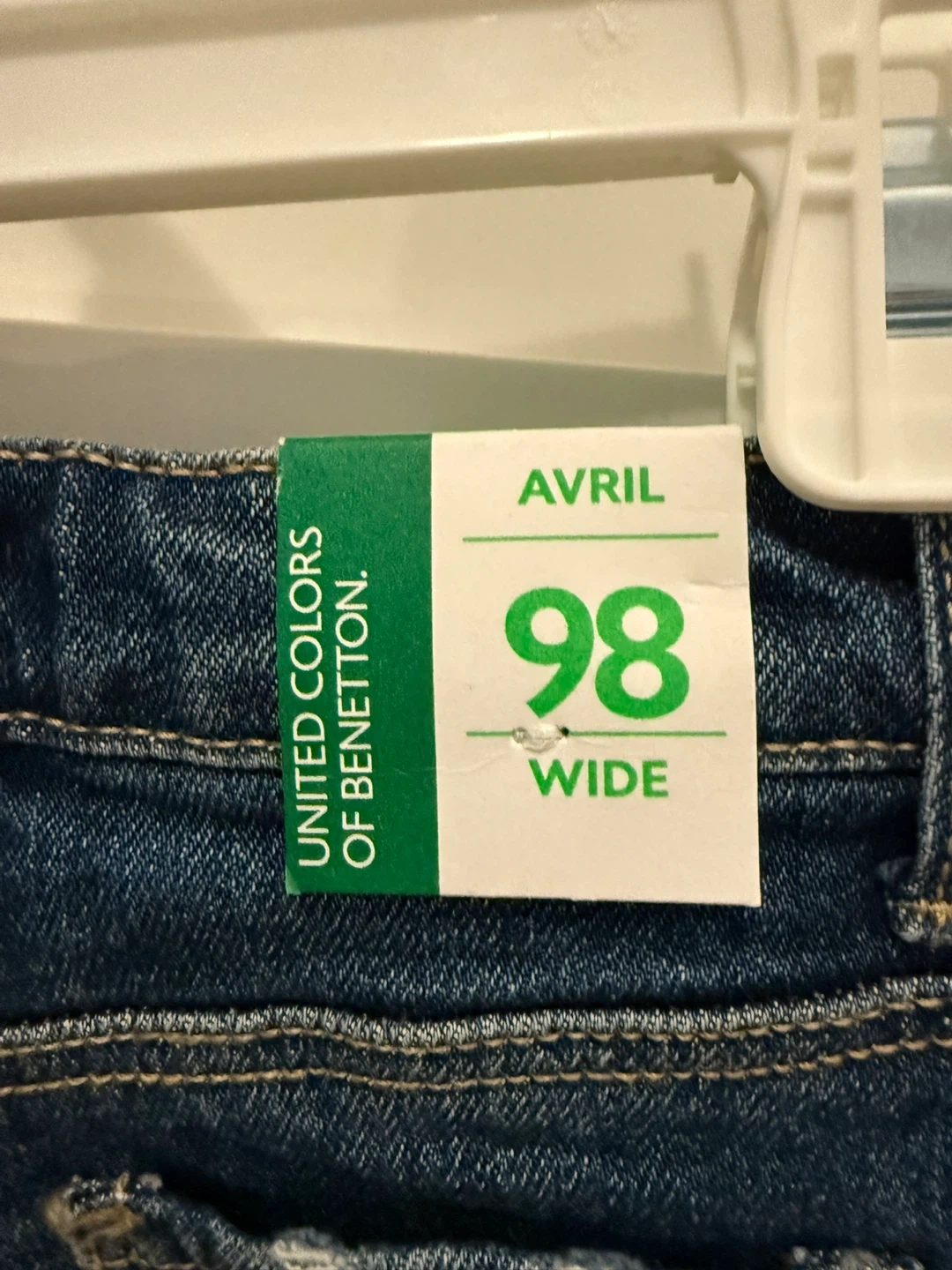 Bought these cute jeans in Italy from United Colors of Benetton. They are brand new - excellent condition! They're size kids 98cm (European) , which fits kids around 2-3 years old. They have a sweet little cloud detail on the back pocket. I paid about $35 euros including tax. My daughter had a huge growth spurt and never got to wear them!