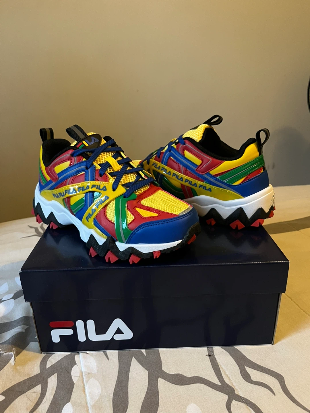 These FILA sneakers are super colorful and vibrant! Never worn, comes with the box, size kids, 4.5