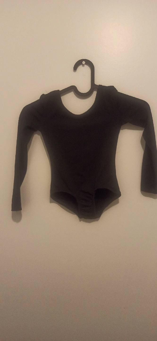 Selling a black leotard from George in size XS (4-5). It's made of 57% cotton, 38% polyester, and 5% spandex