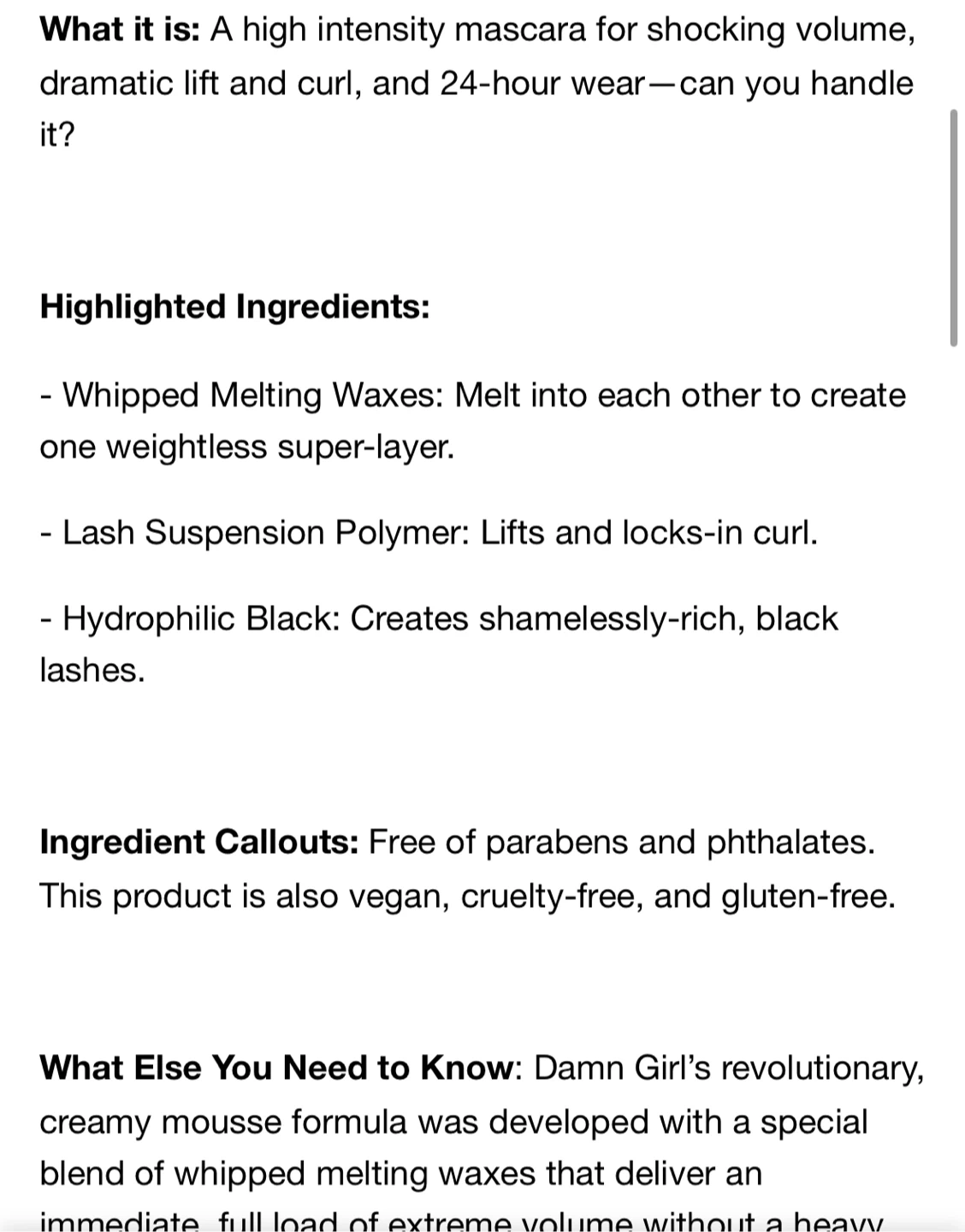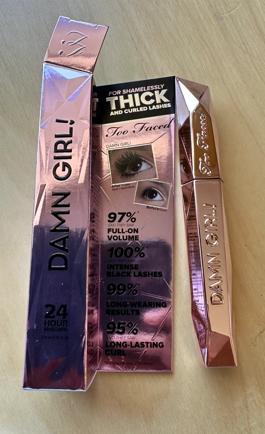 Get shamelessly thick and curled lashes with Too Faced Damn Girl! Mascara