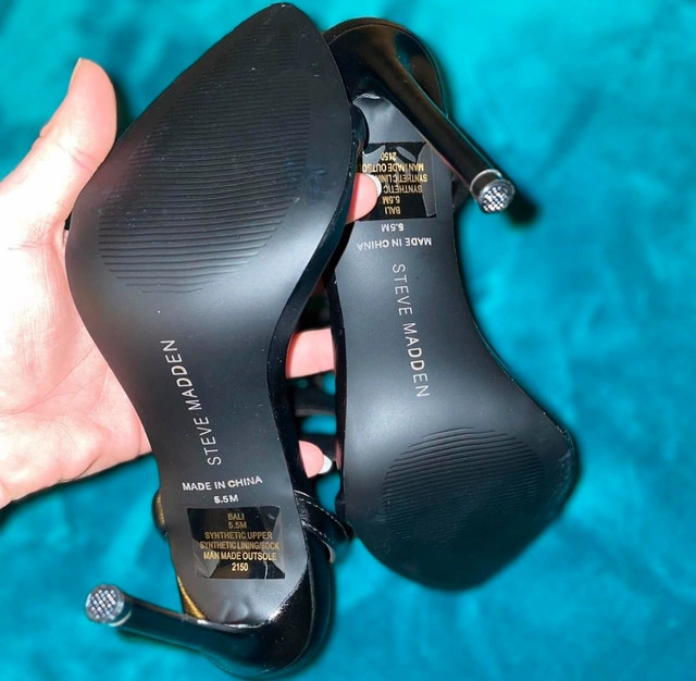 15Steve Madden Brand Size 5.5 US Women Brand New. Never Worn. Still in Original Box/Packaging. black open toed strappy stiletto heel evening footwear chic, sophisticated trendy party heel