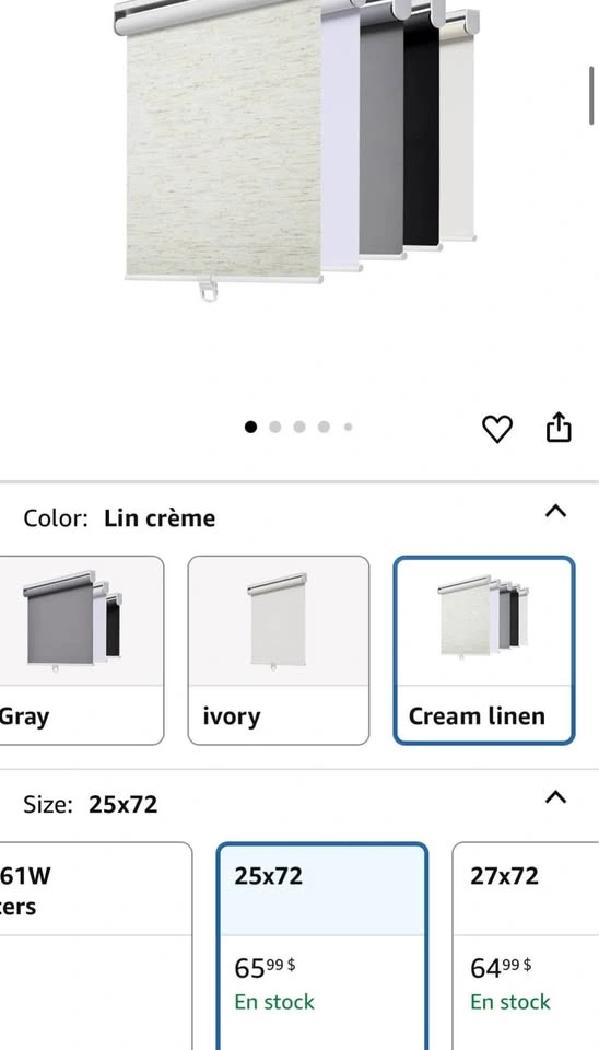 Cordless Roller Shade 26W x 72H Linen Cream