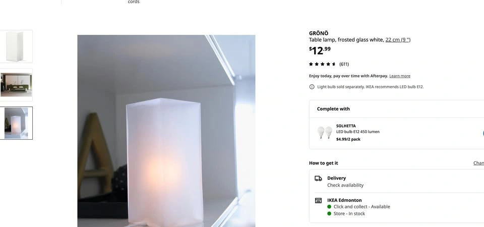 91IKEA GRÖNÖ Table lamp, frosted glass white, 22 cm (9"). Sells for $12.99 at Ikea, light bulb separate. Selling with light bulb for $5. If ad is still up, item is available. Located in Millwoods, near Menisa Elementary school (933 Knottwood Rd S Northwest, Edmonton, AB T6K 3Y9). Will provide actual address when pickup is confirmed. *Cash only* Downsizing my home sale! Please see my other ads (always adding more!). Will discount purchases of multiple items!