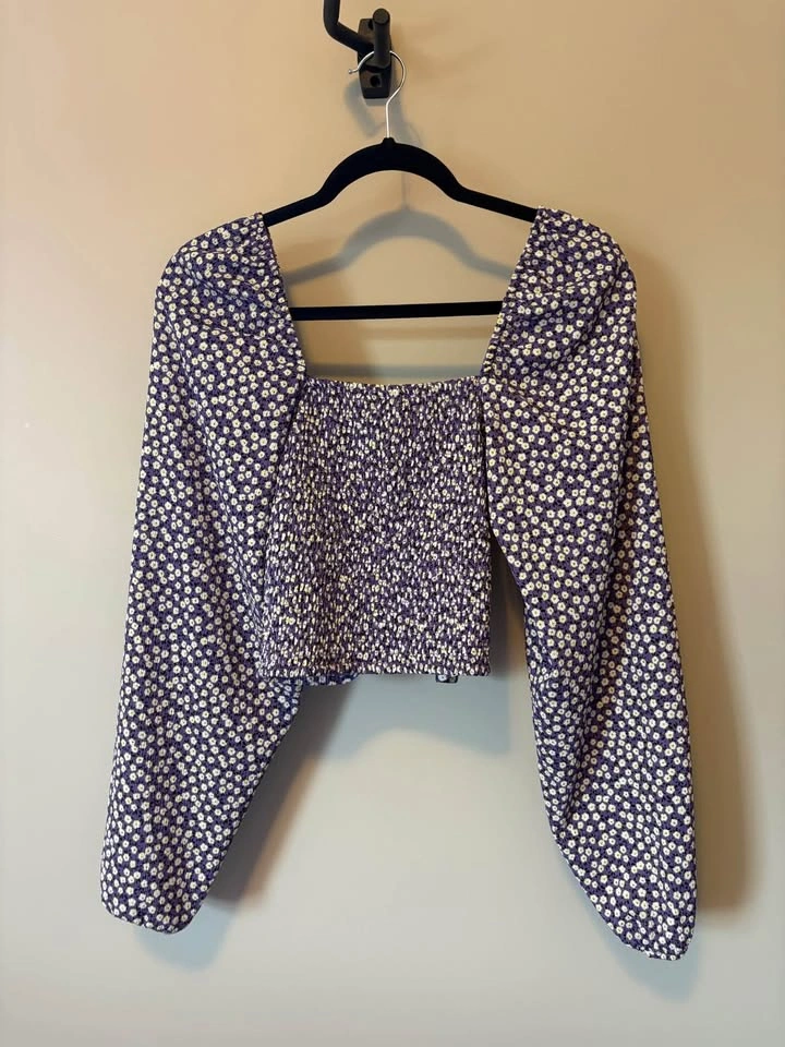 91XS Noisy May Purple Floral Stretch Crop Top Only worn twice size XS New purchase price was $59 Women's Noisy May NMBine Stretch Ruched Front Top/Blouse Colour Purple/White/Yellow Pattern - Floral The Top is Cropped, has a Square Neckline, Cut out Back and is Long Sleeved Material 94% Polyester 4% Elastane Located in Millwoods, near Menisa school. Please use google maps. If ad is still up, item is available. *Cash only* Downsizing sale! Please see my other ads. I will be adding items over time, so please feel free to message to ask if I have something. Will discount purchases of multiple items! Items include: Home office Furniture - bedroom and home office Bedding (Queen, King, and Single) Towels Lamps Picture frames and home decor Dog items Kitchenware Yonanas machine Women’s clothing - sizes XS-medium